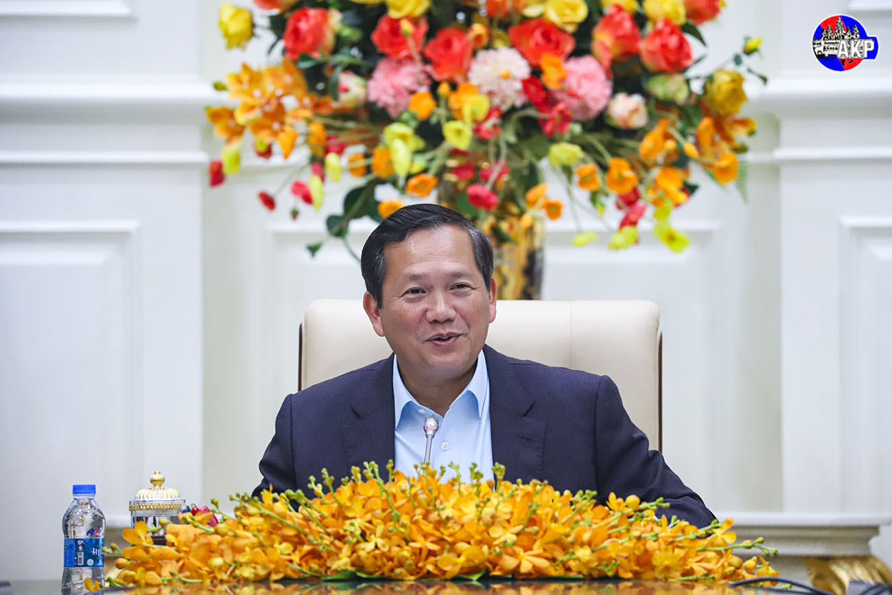 AKP Phnom Penh, March 20, 2025— Samdech Moha Borvor Thipadei Hun Manet (R, Pic. 1), Prime Minister of the Kingdom of Cambodia, receives Mr. Laurent Ferreira, President and CEO of the National Bank of Canada (ABA), at the Peace Palace in Phnom Penh this afternoon. Photo: Kul...
