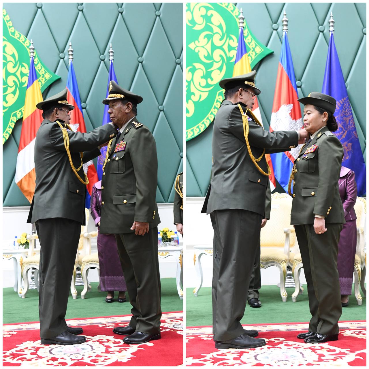 AKP Phnom Penh, March 21, 2025— Samdech Akka Moha Sena Padei Techo Hun Sen (Pic. 1), Acting Head of State of the Kingdom of Cambodia, presides over a ceremony to confer the five-star general rank upon two members of the Supreme Privy Council Members to His Maje...