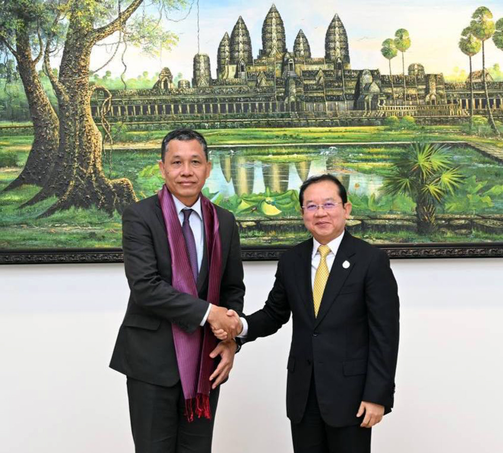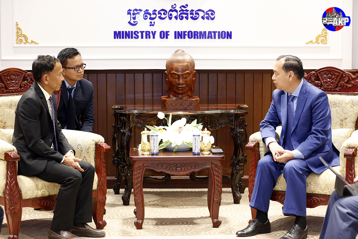 AKP Phnom Penh, March 17, 2025— Cambodia's Minister of Information H.E. Neth Pheaktra (R, Pic. 1) meets at the ministry this afternoon with H.E. THAMARAK LA-ONGNUAL, Rector of Ubon Ratchathani University of Thailand, and his colleagues, to discuss work cooperat...