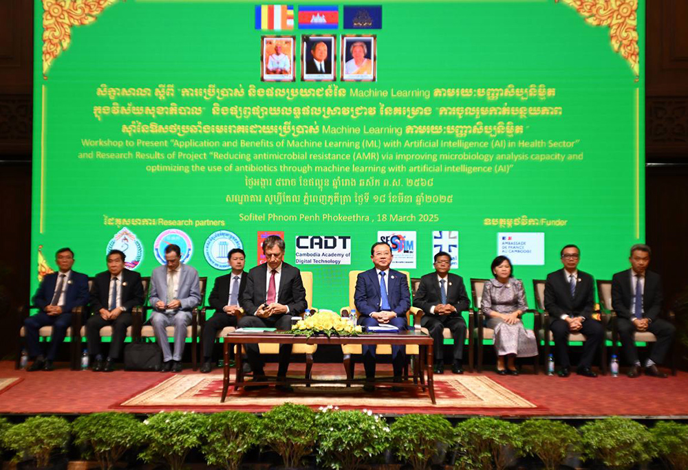 AKP Phnom Penh, March 18, 2025— Cambodia’s Minister of Health H.E. Prof. Chheang Ra (Pic. 1) addresses the participants while he and French Ambassador to Cambodia H.E. Jacques Pellet (Pic. 2) were presiding over the opening ceremony of a Workshop to Present...