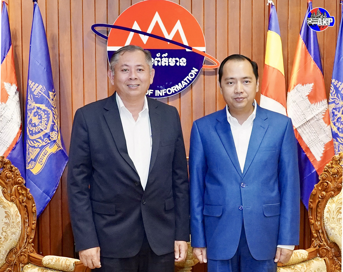 AKP Phnom Penh, March 14, 2025— Cambodia’s Minister of Information H.E. Neth Phreaktra (R, Pic. 1) poses for a photo with Prof. Sabo Ojano, President and CEO of International University (IU), at their meeting at the ministry’s office here this afternoon. Photo:...