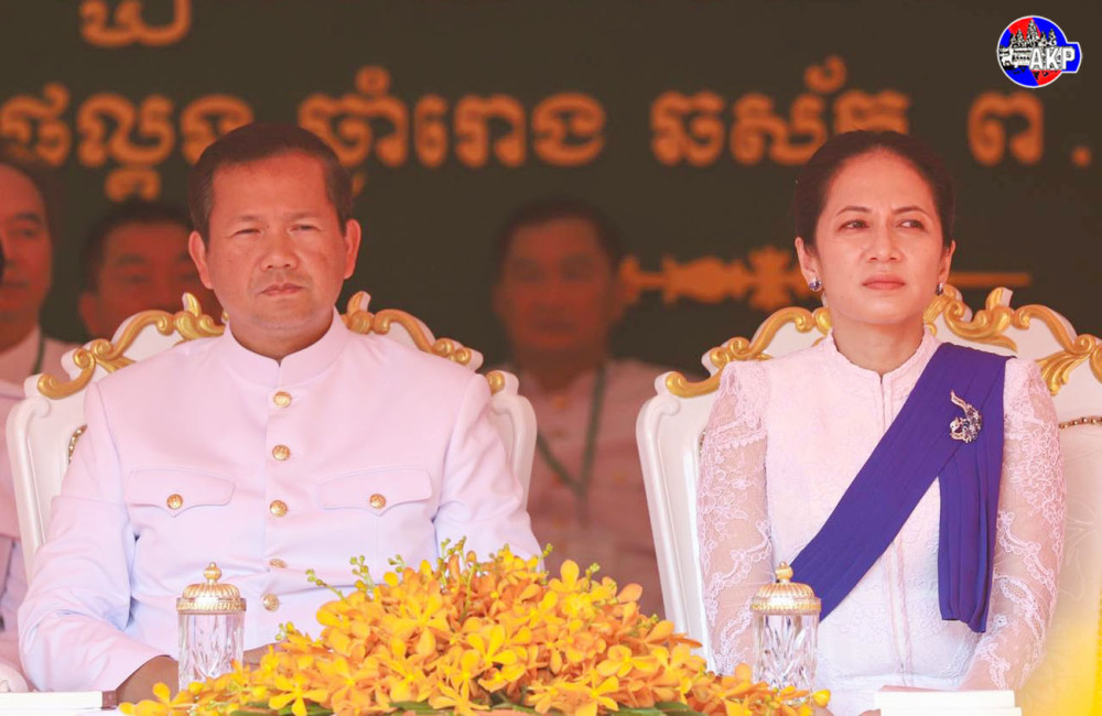 AKP Phnom Penh, March 14, 2025— Prime Minister Samdech Moha Borvor Thipadei Hun Manet and his spouse Lok Chumteav Pich Chanmony offer Preah Sokunveary (holy fragrant water) to senior Buddhist monks at a ceremony held at Botum Vattey pagoda in Ph...