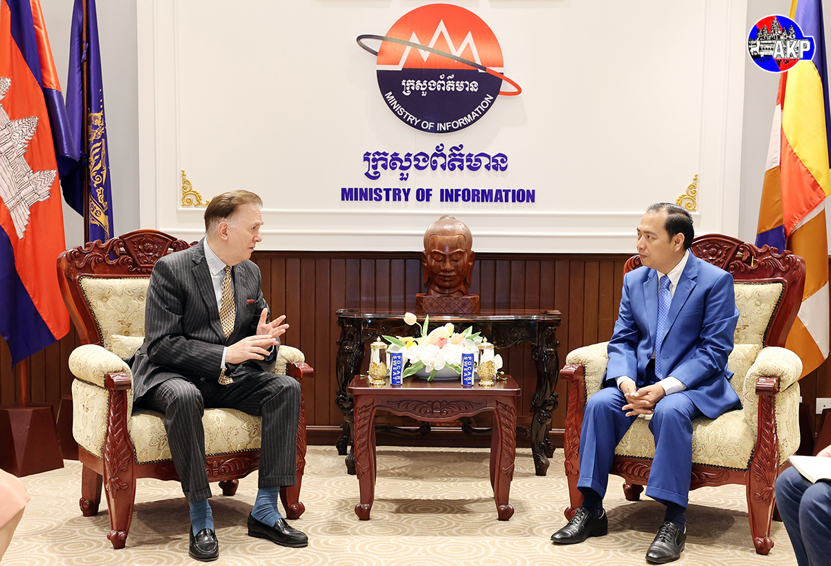 AKP Phnom Penh, March 14, 2025— Cambodia’s Minister of Information H.E. Neth Pheaktra (R, Pic. 1) receives a delegation of B2B Cambodia led by its CEO Ms. Sarvinoz Nuritdinova and its Director Mr. Anthony Galliano, at the ministry’s office here this morning...