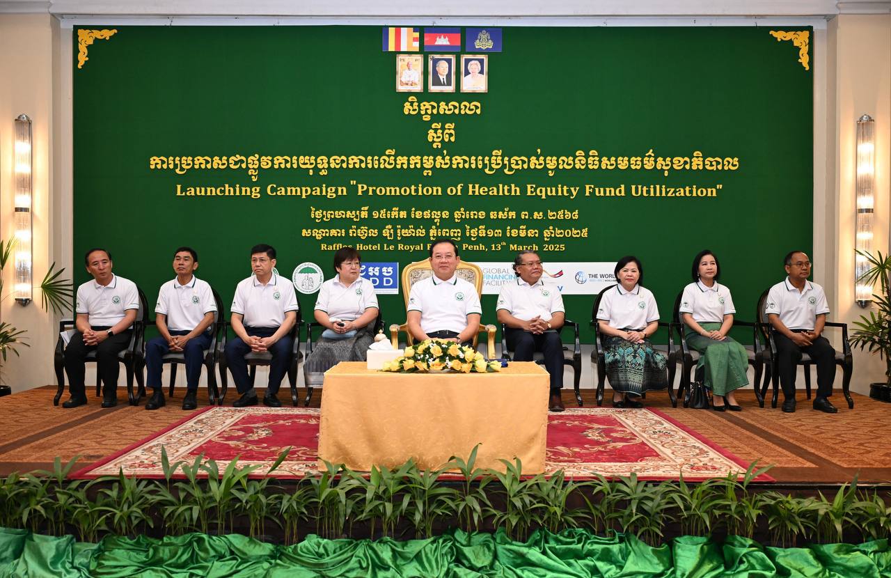 AKP Phnom Penh, March 13, 2025— H.E. Prof. Chheang Ra (C, Pic. 1), Minister of Health, presides over the launching ceremony of a campaign on “Promotion of Health Equity Fund Utilisation,” held at the Raffles Hotel Le Royal, Phnom Penh this morning. Photo: Mi...