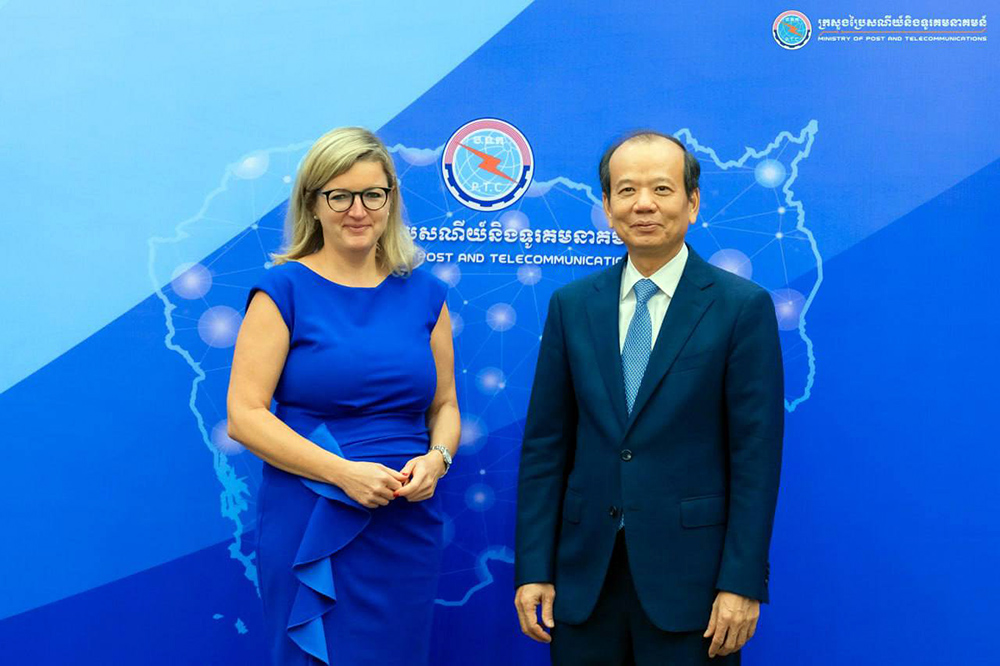 AKP Phnom Penh, February 20, 2025— H.E. Chea Vandeth (R, Pic. 1), Minister of Posts and Telecommunications, poses for a photo with visiting Mrs. Martina Klement, Chief Digital Officer of the State of Berlin, Federal Republic of Germany, at their meeting at the mini...