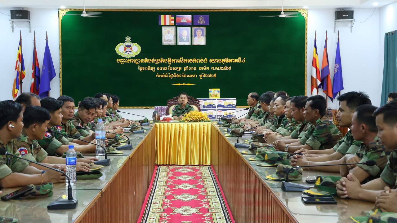 AKP កំពង់ធំ ថ្ងៃទី១៣ ខែមេសា ឆ្នាំ២០២៥-- ឧត្តមសេនីយ៍ទោ សោម ស៊ុន មេបញ្ជាការតំបន់ប្រតិបត្តិការសឹករងកំពង់ធំ នាព្រឹកថ្ងៃទី១៣ ខែមេសា ឆ្នាំ២០២៥ បានដឹកនាំកិច្ចប្រជុំប្រកាសសមាសភាពបែងចែកវេនប្រចាំការ ប្រចាំបញ្ជា និងរៀបចំកងកម្លាំងសម្រាប់ត្រៀមចល័តអន្តរាគមន៍ដោះស្រាយជាយថាហេតុផ្សេងៗ ដែលអាចកើតមានឡើងនៅក្នុងភូមិសាស្ត្...