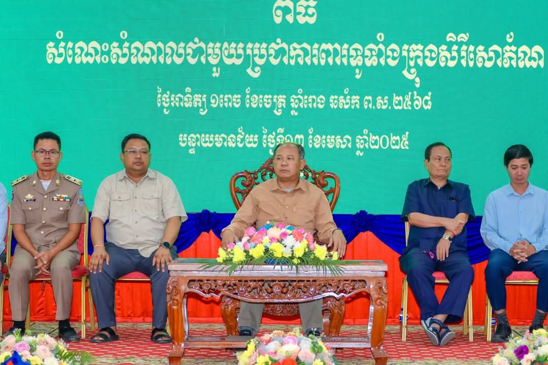 AKP បន្ទាយមានជ័យ ថ្ងៃទី១៣ ខែមេសា ឆ្នាំ២០២៥-- ក្នុងឱកាសបុណ្យចូលឆ្នាំថ្មីប្រពៃណីជាតិខ្មែរ ឆ្នាំម្សាញ់ ឆស័ក ព.ស. ២៥៦៩ ឯកឧត្តម អ៊ុ រាត្រី អភិបាលនៃគណៈអភិបាលខេត្តបន្ទាយមានជ័យ បានបង្ហាញការយកចិត្តទុកដាក់ខ្ពស់ចំពោះកម្លាំងប្រជាការពារដែលជាកម្លាំងស្នូលក្នុងការថែរក្សាសន្តិសុខ សណ្តាប់ធ្នាប់ ក្នុងមូលដ្ឋាន។ ជាក់ស្ត...