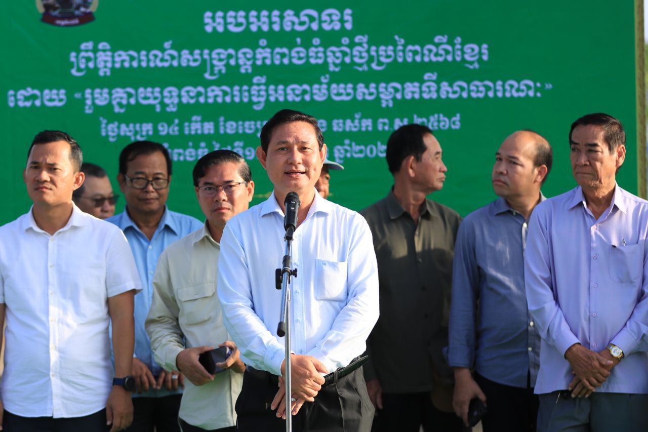 AKP កំពង់ស្ពឺ ថ្ងៃទី១២ ខែមេសា ឆ្នាំ២០២៥-- លោក ច័ន្ទថេត ថានរៈ ប្រធានមន្ទីរបរិស្ថានខេត្តកំពង់ស្ពឺ បានដឹកនាំមន្ត្រីរាជការ និងមន្ត្រីជាប់កិច្ចសន្យានៃមន្ទីរបរិស្ថានខេត្ត ដោយមានការចូលរួមពីយុវជនស.ស.យ.ក យុវជនសាខាកាកបាទក្រហមកម្ពុជាខេត្ត និងយុវជនកាយរិទ្ធ ដើម្បីចូលរួមសំអាតនិងអនាម័យបរិស្ថាននៅតាមបណ្តោយមាត់ស្ទឹងព...