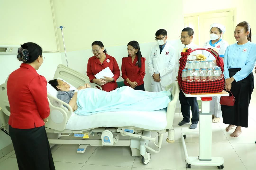 AKP ភ្នំពេញ ថ្ងៃទី០៩ ខែមេសា ឆ្នាំ២០២៥-- សម្តេចកិត្តិព្រឹទ្ធបណ្ឌិតប៊ុន រ៉ានី ហ៊ុនសែន ប្រធានកាកបាទក្រហមកម្ពុជា បានចាត់លោកជំទាវ ម៉ែន នារីសោភ័គ អគ្គលេខាធិការរងទី១កាកបាទក្រហមកម្ពុជា និងសហការី នៅថ្ងៃទី០៩ ខែមេសា ឆ្នាំ២០២៥ បានអញ្ជើញសួរសុខទុក្ខ និងនាំយកភេសជ្ជៈផ្លែឈើ និងថវិកាជូនលោកជំទាវបណ្ឌិតសភាចារ្យ ខ្លូត ធី...