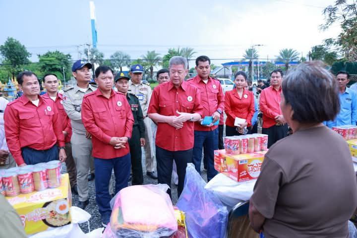 ប្រជាពលរដ្ឋរងគ្រោះភ្លើងឆេះផ្ទះនៅស្រុកអង្គស្នួលទទួលអំណោយពីសាខាកាកបាទក្រហមកម្ពុជាខេត្តកណ្តាល