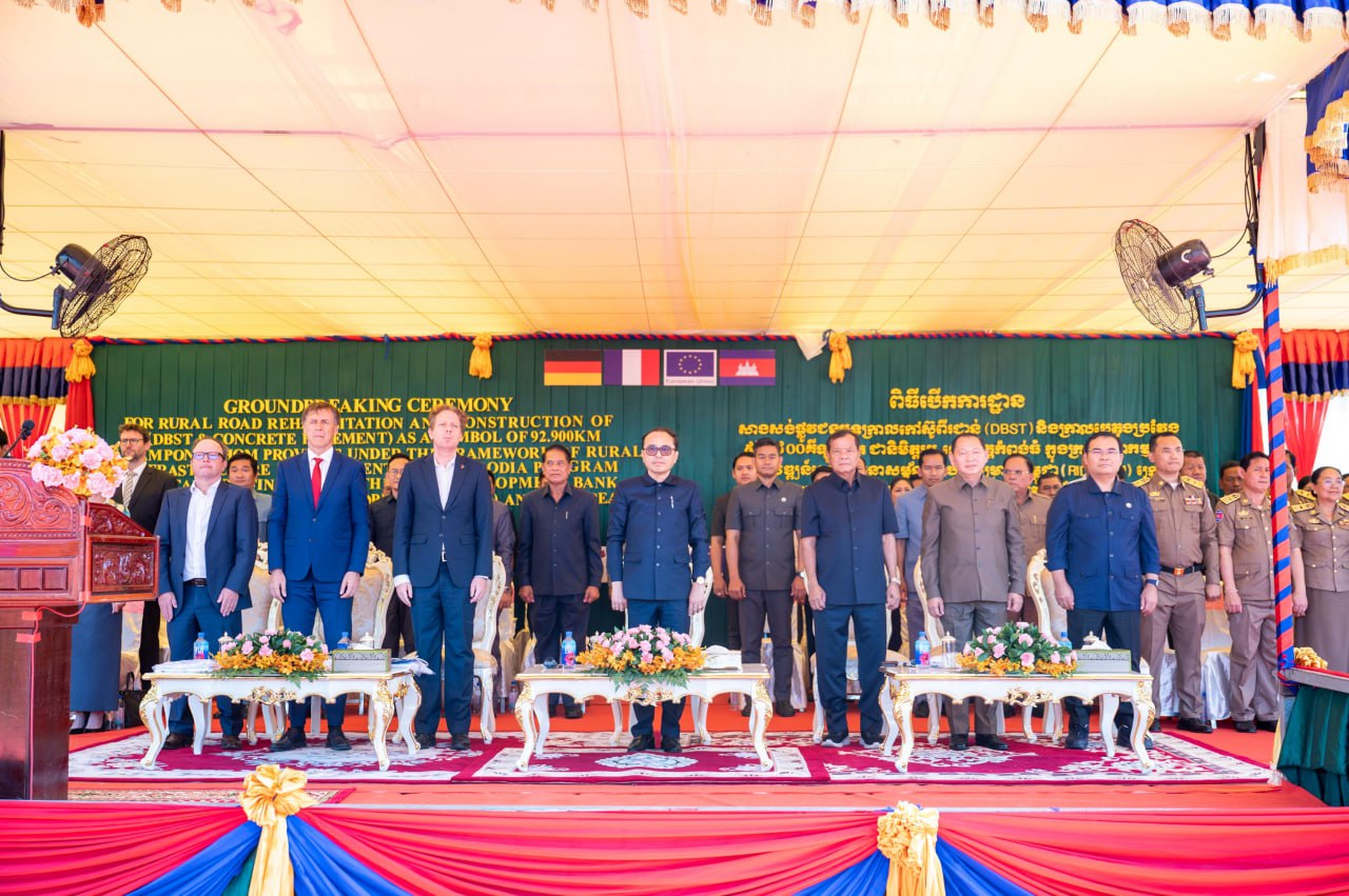 ពិធីសម្ពោធបើកការដ្ឋានសាងសង់ផ្លូវក្រាលកៅស៊ូពីរជាន់ (DBST) និងផ្លូវបេតុង សរុបប្រវែង ៩២,៩០គ.ម. ជានិមិត្តរូប នៅខេត្តកំពង់ធំ