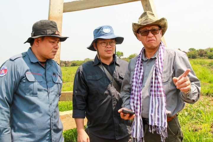 AKP ភ្នំពេញ ថ្ងៃទី២៣ ខែមីនា ឆ្នាំ២០២៥-- ឯកឧត្តម គិត ចន្ទ័គ្រឹស្នា អនុរដ្ឋលេខាធិការជាប្រធានក្រុមប្រតិបត្តិទទួលស្រុកសង្កែ និងឯកឧត្តម សរ គឹមសាន្ត អគ្គលេខាធិការ អាជ្ញាធរទន្លេសាប នៅថ្ងៃទី២២ ខែមីនា ឆ្នាំ២០២៥ ដឹកនាំមន្ត្រីបច្ចេកទេសអន្តរក្រសួងទៅ ពិនិត្យ ផ្ទៀងផ្ទាត់ ធ្វើបច្ចុប្បន្នភាព បង្គោលព្រំតំបន់៣ ស្រ...