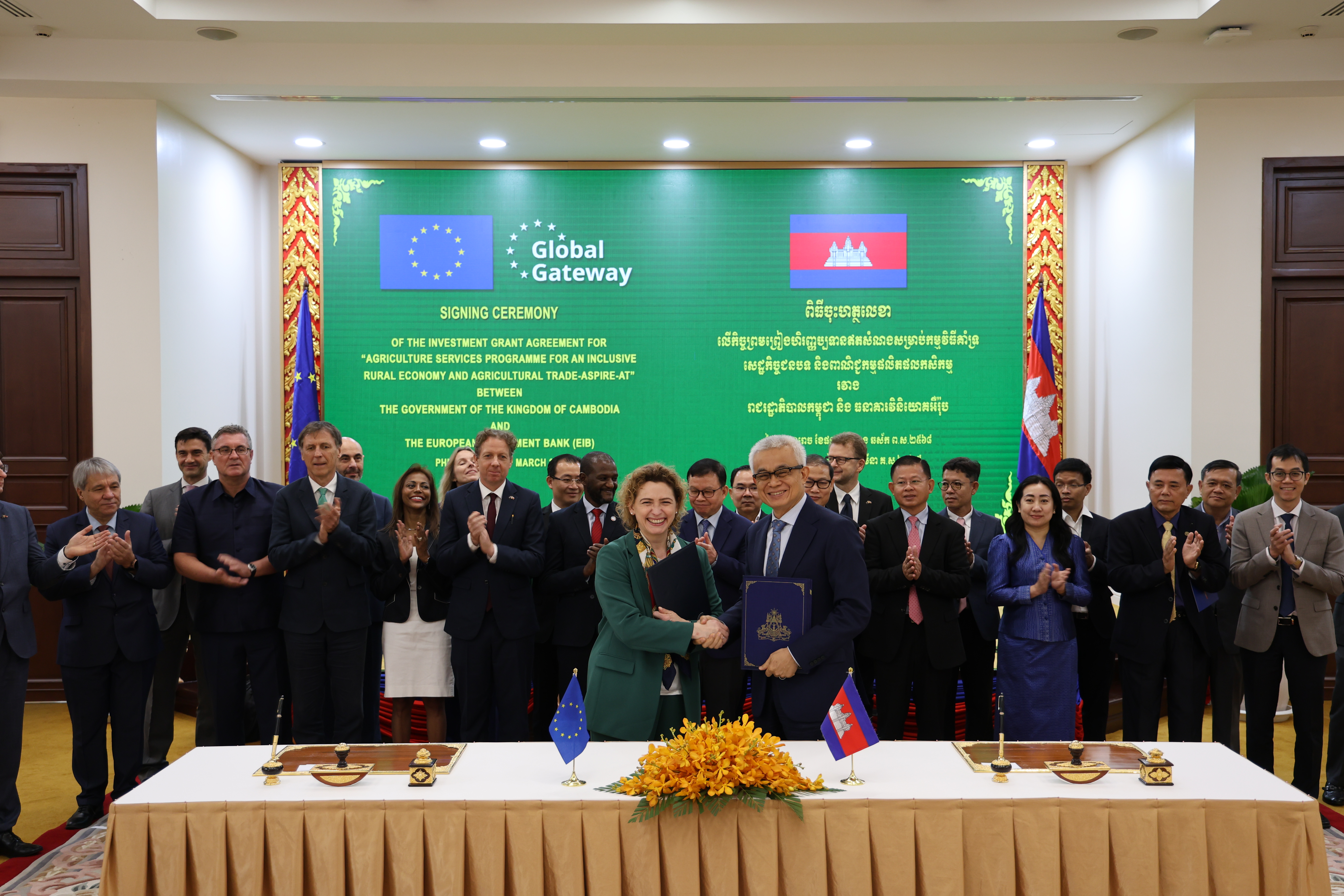 AKP ភ្នំពេញថ្ងៃទី១៤ ខែមីនា ឆ្នាំ ២០២៥៖ សហភាពអឺរ៉ុបវិនិយោគទឹកប្រាក់ជិត ៨០ លានអឺរ៉ូ ដើម្បីធ្វើទំនើបកម្មវិស័យកសិកម្មនៅកម្ពុជា និងជំរុញឱ្យកសិករមានលទ្ធភាពចូលទៅកាន់ទីផ្សារក្នុងស្រុក និងសកល។ កញ្ចប់វិនិយោគគ្រប់ជ្រុងជ្រោយរបស់សហភាពអឺរ៉ុប៖ ដែលរួមមាន ឥណទាន របស់ធនាគារវិនិយោគអឺរ៉ុបសកល (EIB Global) បូ...