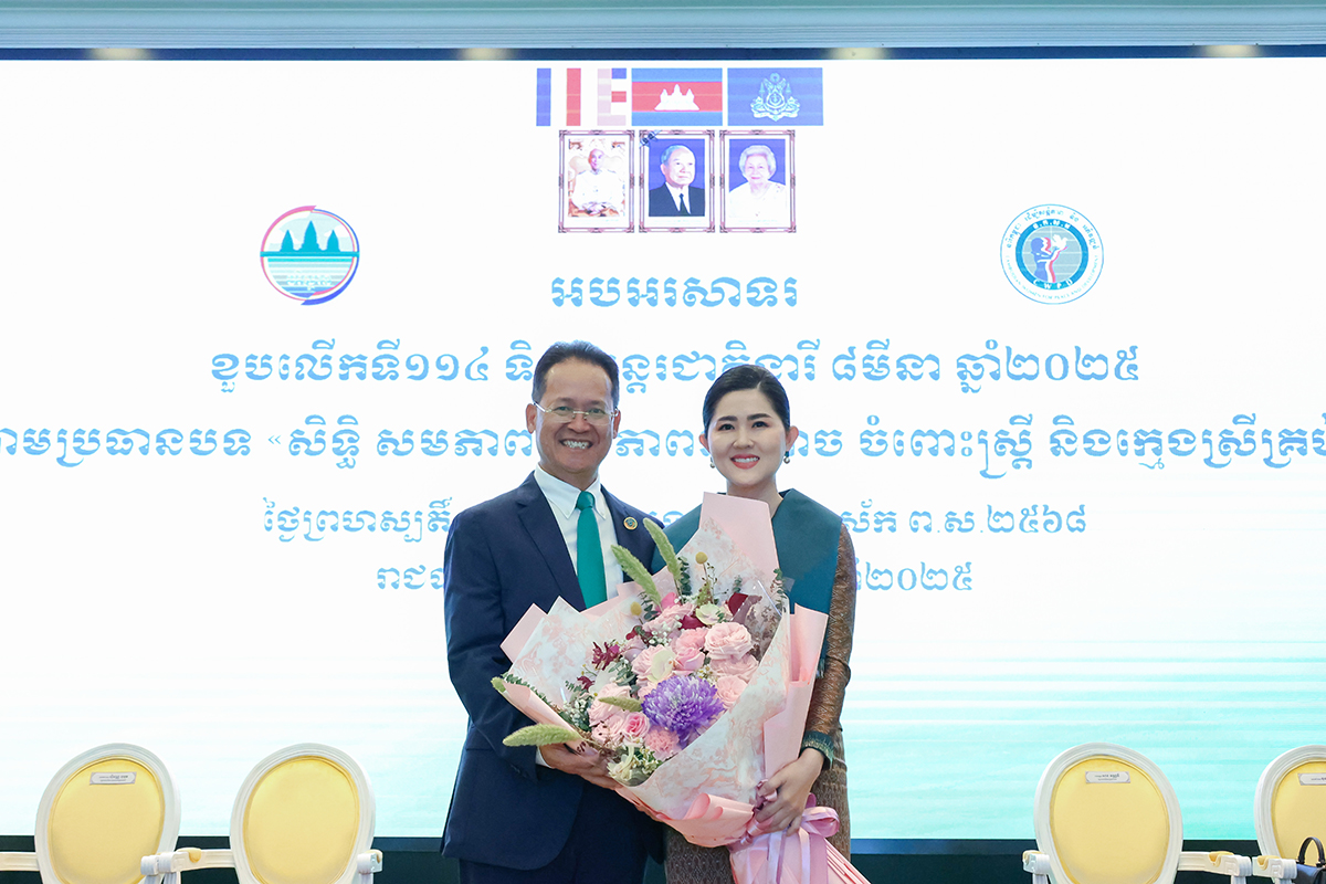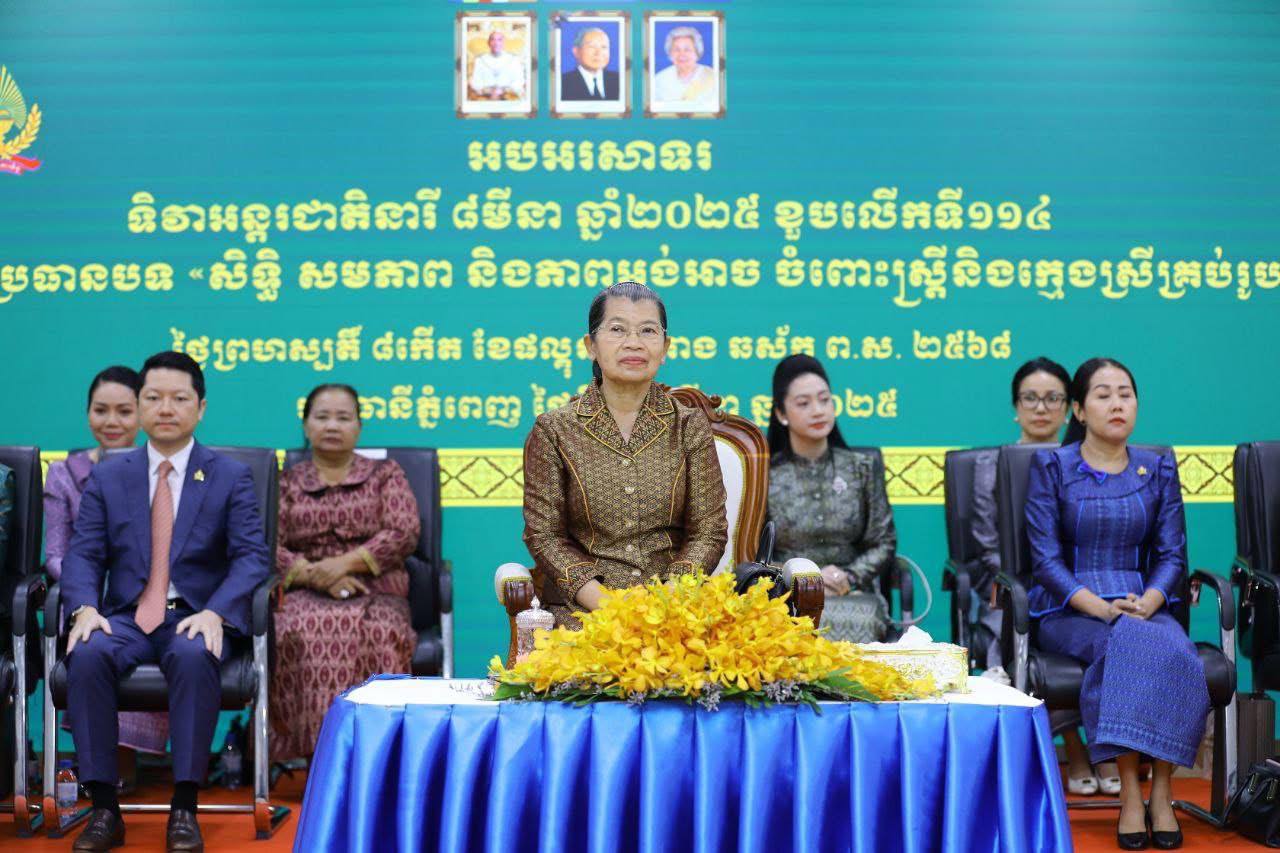 AKP ភ្នំពេញ ថ្ងៃទី០៦ ខែមីនា ឆ្នាំ២០២៥-- សម្តេចកិត្តិសង្គហបណ្ឌិត ម៉ែន សំអន ឧត្តមប្រឹក្សាផ្ទាល់ព្រះមហាក្សត្រ និងជាប្រធានសមាគមនារីកម្ពុជា ដើម្បីសន្តិភាព និងអភិវឌ្ឍន៍ បានចូលរួមក្នុងពិធីអបអរសាទរ ខួបលើកទី១១៤ ទិវាអន្តរជាតិនារី ៨មីនា ក្រោមប្រធានបទ “សិទ្ធិ សមភាព និងភាពអង់អាចចំពោះស្ត្រី និងក្មេងស្រីគ្រប...