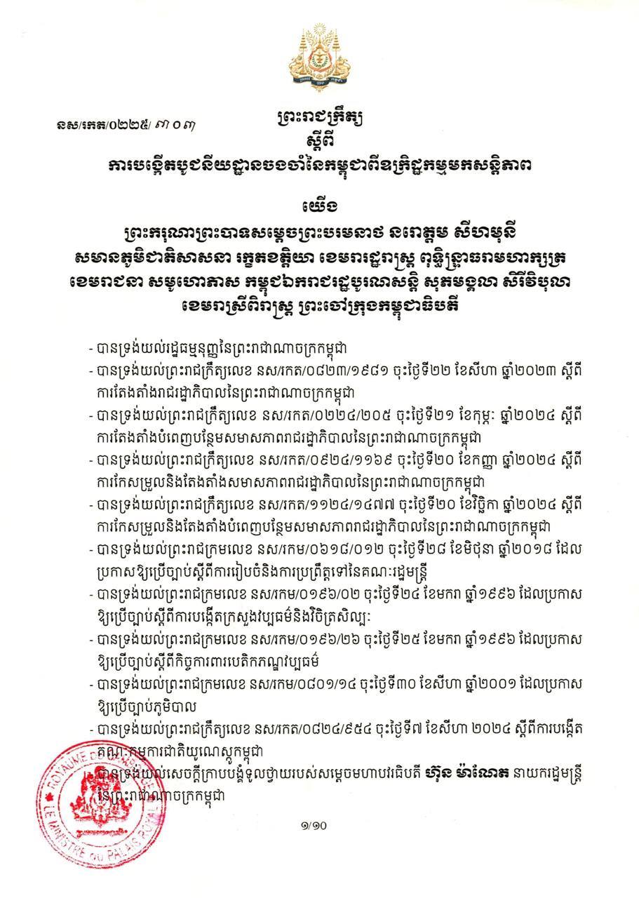 ព្រះរាជក្រឹត្យ ស្តីពីការបង្កើតបូជនីយដ្ឋានចងចាំនៃកម្ពុជាពីឧក្រិដ្ឋកម្មមកសន្តិភាព