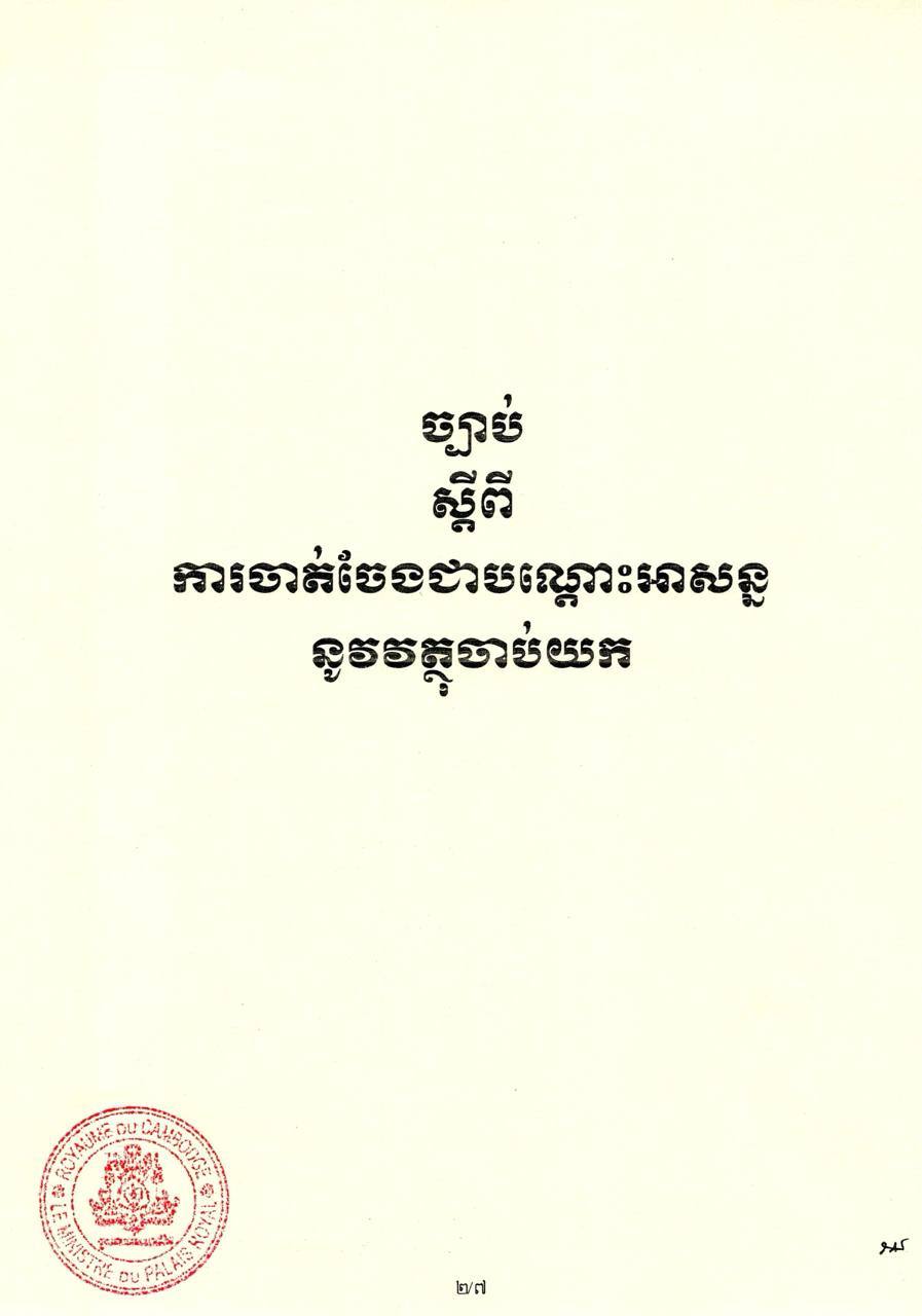 ព្រះរាជក្រម ប្រកាសឱ្យប្រើ ច្បាប់ស្តីពីការចាត់ចែងជាបណ្តោះអាសន្ននូវវត្ថុចាប់យក