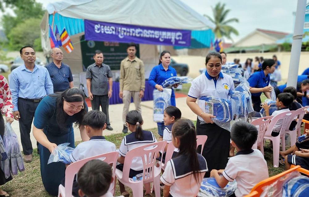 លោកជំទាវ គីម សុភ័ក្ភ្រ ម៉ាង ស៊ីណេត នាំយកកាតាប សម្ភារសិក្សា និងថវិកាចែកជូនសិស្សានុសិស្សសាលាបឋមសិក្សាកម្មករ