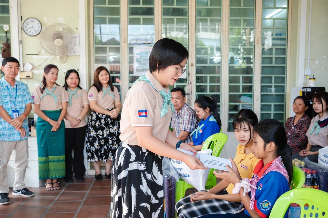 AKP ភ្នំពេញ ថ្ងៃទី០១ ខែមីនា ឆ្នាំ២០២៥-- លោកស្រី ដោ សម្ផស្ស អនុប្រធានប្រឹក្សានៃសមាគមកាយឫទ្ធិនារីកម្ពុជាសាខារាជធានីភ្នំពេញ និងជាតំណាងដ៏ខ្ពង់ខ្ពស់របស់លោកជំទាវ ជា ស៊ីណា ឃួង ស្រេង ប្រធានក្រុមប្រឹក្សានៃសមាគមកាយឫទ្ធិនារីកម្ពុជាសាខារាជធានីភ្នំពេញ បានយកអំណោយដ៏ថ្លៃថ្លារបស់លោកជំទាវបណ្ឌិត ពេជ ចន្ទមុន្នី ហ៊ុន ម៉...