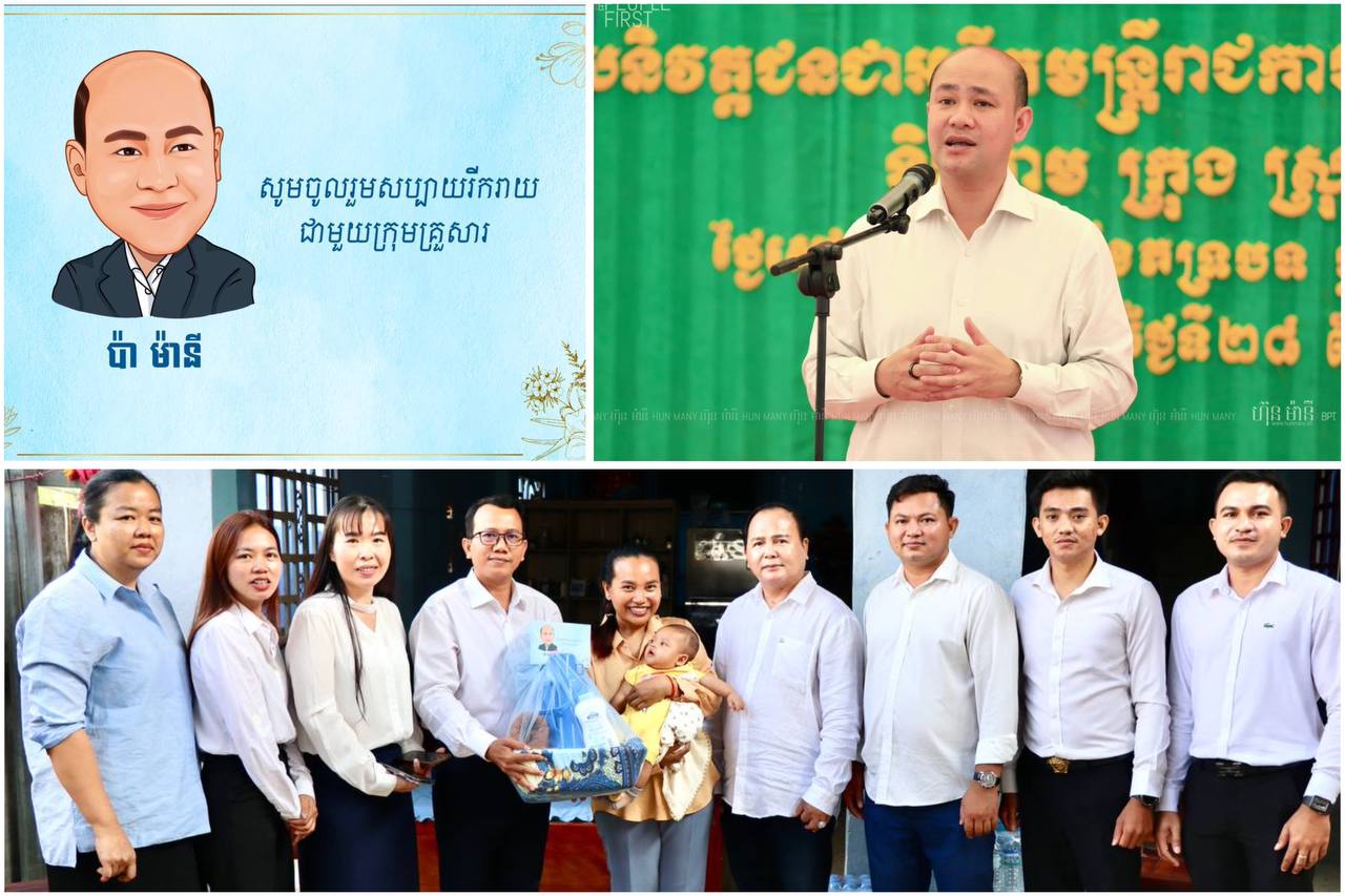កម្មវិធី «ប៉ា ម៉ានី»! ឧបនាយករដ្ឋមន្ត្រី ហ៊ុន ម៉ានី ចាត់តំណាងបន្តចុះសួរសុខទុក្ខ និងនាំយកវត្ថុអនុស្សាវរីយ៍ជូនមន្ត្រីសុខាភិបាលបម្រើការងារនៅមណ្ឌលសុខភាពជាសុីមឱរ៉ាល់ ដែលទើបសម្រាលបុត្រ និងកំពុងសម្រាកមាតុភាព