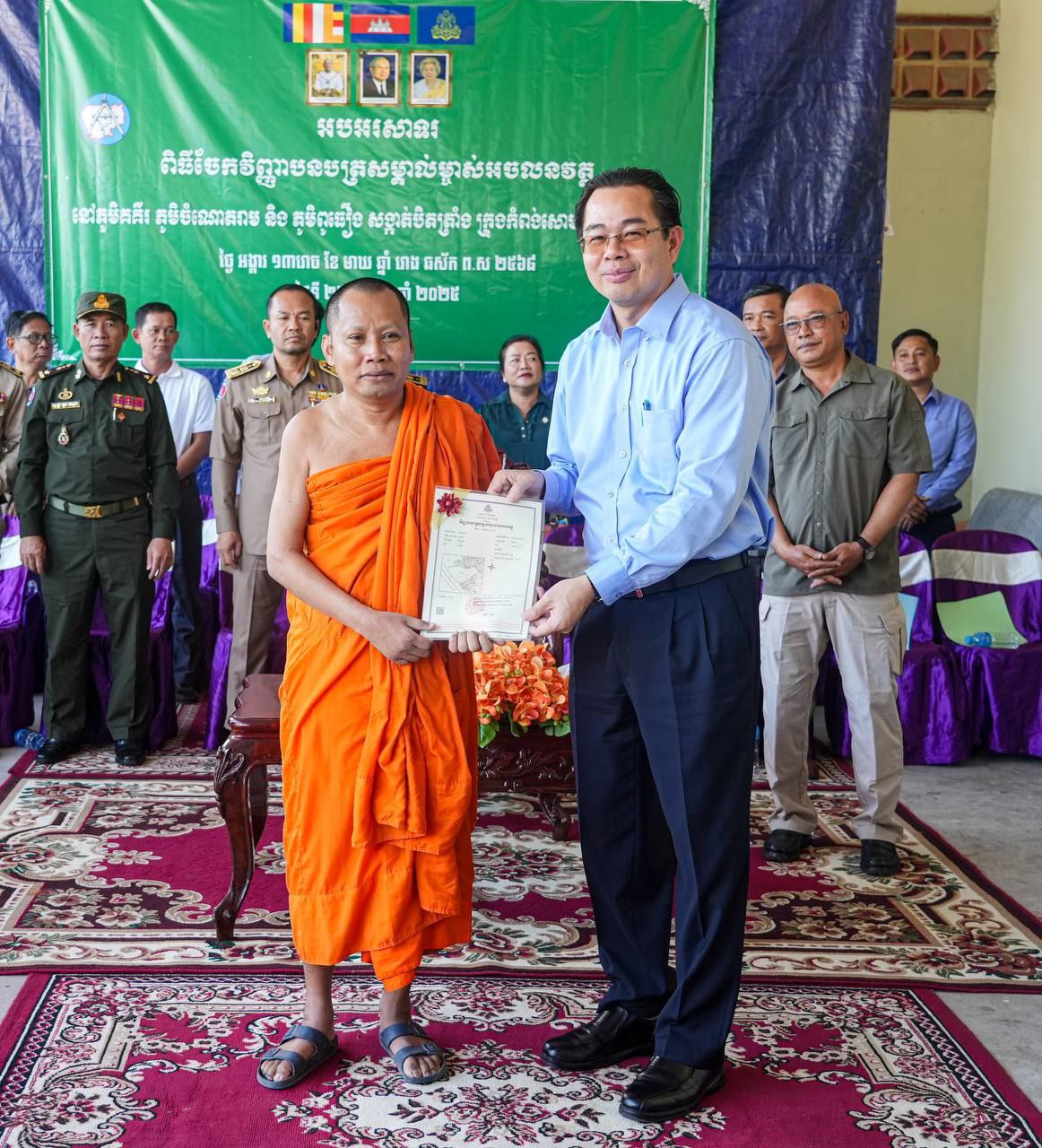 AKP ព្រះសីហនុ ថ្ងៃទី២៥ ខែកុម្ភៈ ឆ្នាំ២០២៥-- ឯកឧត្តម ម៉ាង ស៊ីណេត អភិបាលនៃគណៈអភិបាលខេត្តព្រះសីហនុ បានអញ្ជើញជាគណៈអធិបតីចែកវិញ្ញាបនបត្រសម្គាល់ម្ចាស់អចលនវត្ថុជូនប្រជាពលរដ្ឋចំនួន៣ភូមិ ក្នុងនោះភូមិគគីរ ភូមិចំណោតរាម និងភូមិពូធឿង ដោយមានការចូលរួមពីលោកអភិបាលរងខេត្ត លោកអភិបាលក្រុងកំពង់សោម ប្រធានមន្ទីរ អង្គភាពក្...