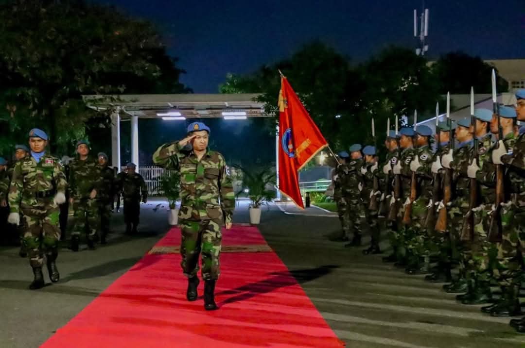 AKP ភ្នំពេញ ថ្ងៃទី១៣ ខែកុម្ភៈ ឆ្នាំ២០២៥-- ឯកឧត្តម ឧត្តមសេនីយ៍ទោ សែម រតនា អនុប្រធានទី១គណៈកម្មាធិការជាតិ និងជាអគ្គនាយកស្តីទីមជ្ឈមណ្ឌលជាតិរក្សាសន្តិភាពបានអញ្ជើញជាអធិបតីក្នុងពិធីសំណេះសំណាល និងជូនដំណើរកងរាជអាវុធហត្ថលេខ៨៧២ ចំនួន៧៣នាក់ ក្នុងនោះនារីចំនួន៣៦នាក់ ដែលត្រូវចេញទៅបំពេញបេសកកម្មអង្គការសហប្រជាជា...