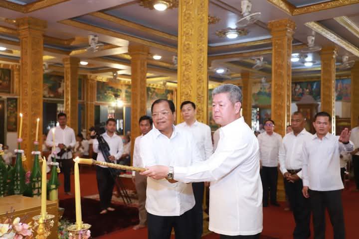 AKP កណ្ដាល ថ្ងៃទី១២ ខែកុម្ភៈ ឆ្នាំ២០២៥-- ឯកឧត្ដម នូ សាខន ប្រធានក្រុមប្រឹក្សាខេត្តកណ្ដាល ឯកឧត្ដម គួច ចំរើន អភិបាលខេត្តកណ្ដាល និងមន្រ្តីរាជការក្នុងខេត្ត កាលពីរសៀលថ្ងៃទី១១ ខែកុម្ភៈ ឆ្នាំ២០២៥ បានអញ្ជើញចូលរួមពិធីបុណ្យមាឃបូជា នៅវត្តវេឡុការាម ហៅវត្តព្រែកឫស្សី ក្រុងតាខ្មៅ ខេត្តកណ្ដាល។ មាឃបូជាជាពីធីបុ...