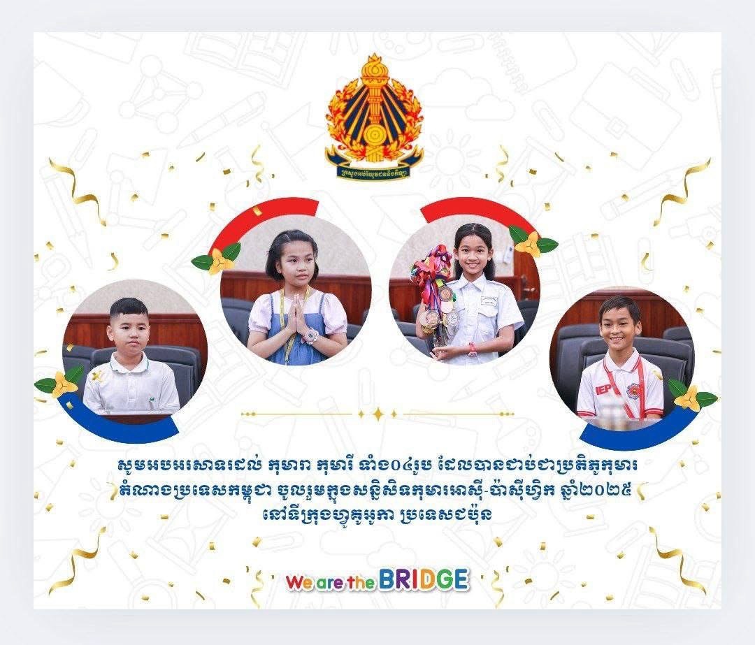 ក្រសួងអប់រំ យុវជន និងកីឡា អបអរសាទរលទ្ធផលប្រតិភូកុមារជាប់ស្ថាពរ និងជាប់បម្រុង ដើម្បីចូលរួម "សន្និសីទកុមារអាស៊ី-ប៉ាស៊ីហ្វិក ឆ្នាំ២០២៥"
