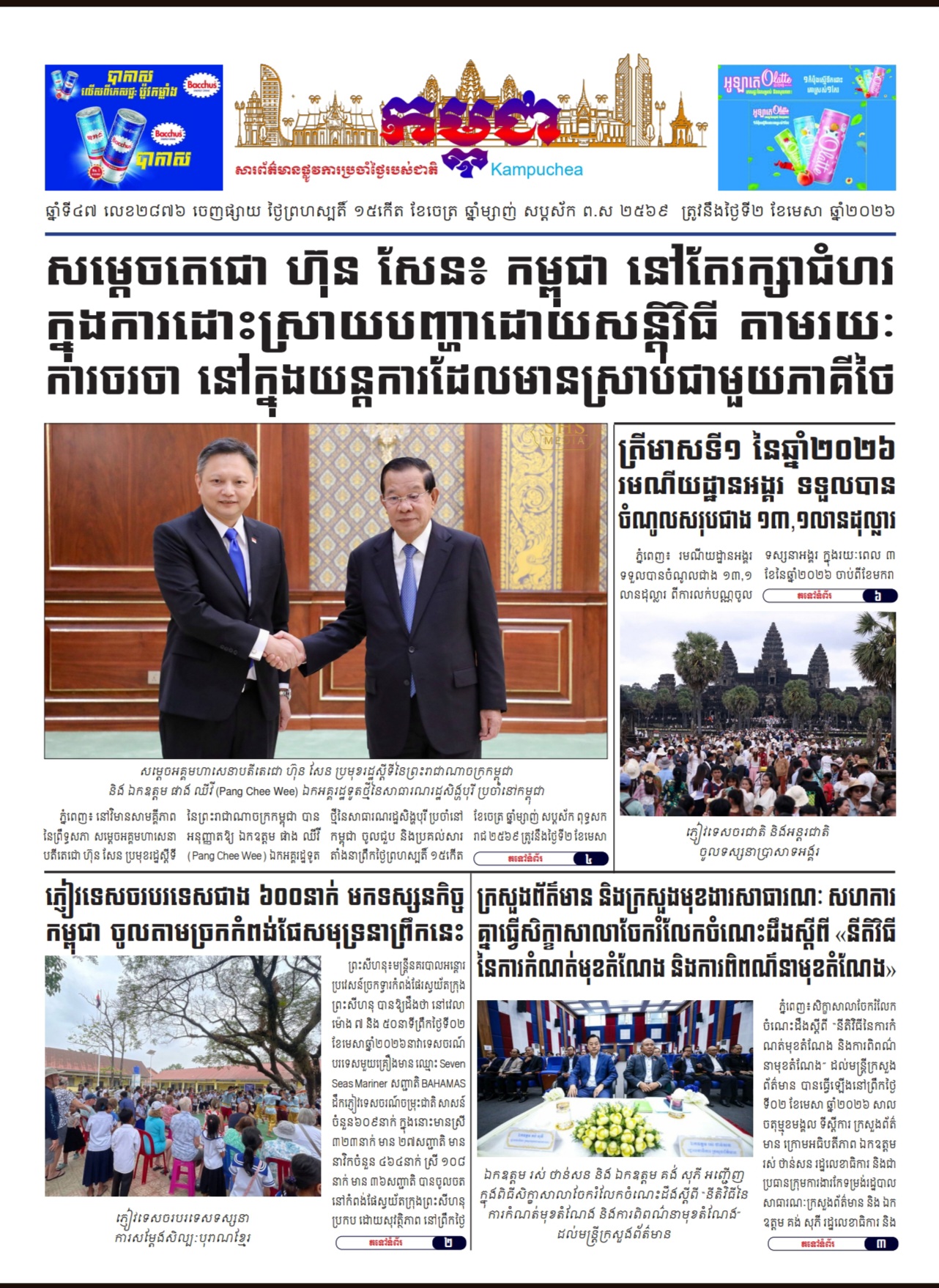 កាសែតកម្ពុជាលេខ២៨៧៦ ចេញផ្សាយថ្ងៃព្រហស្បតិ៍ ទី០២ ខែមេសា ឆ្នាំ២០២៦