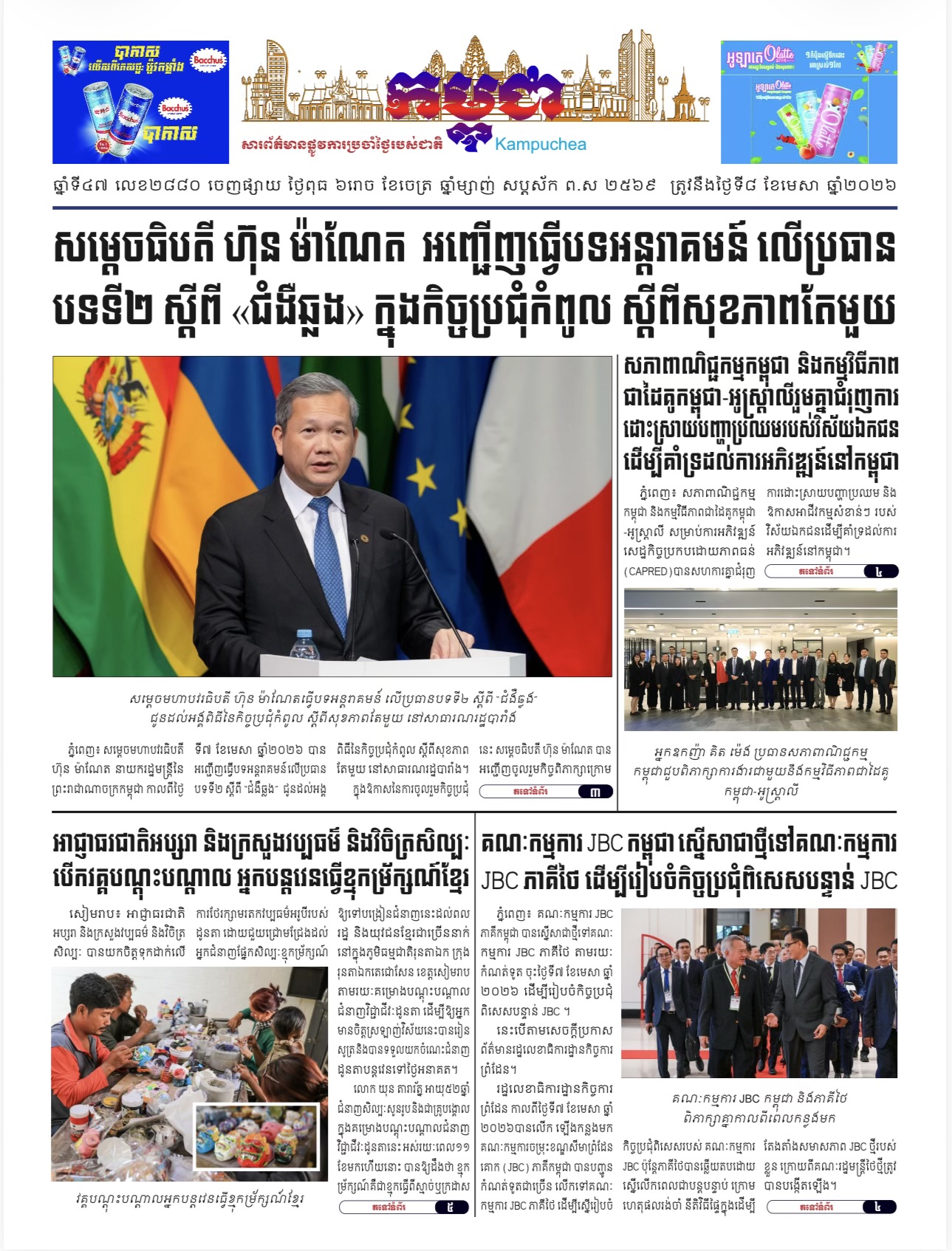 កាសែតកម្ពុជាលេខ២៨៨០ ចេញផ្សាយថ្ងៃពុធ ទី០៨ ខែមេសា ឆ្នាំ២០២៦