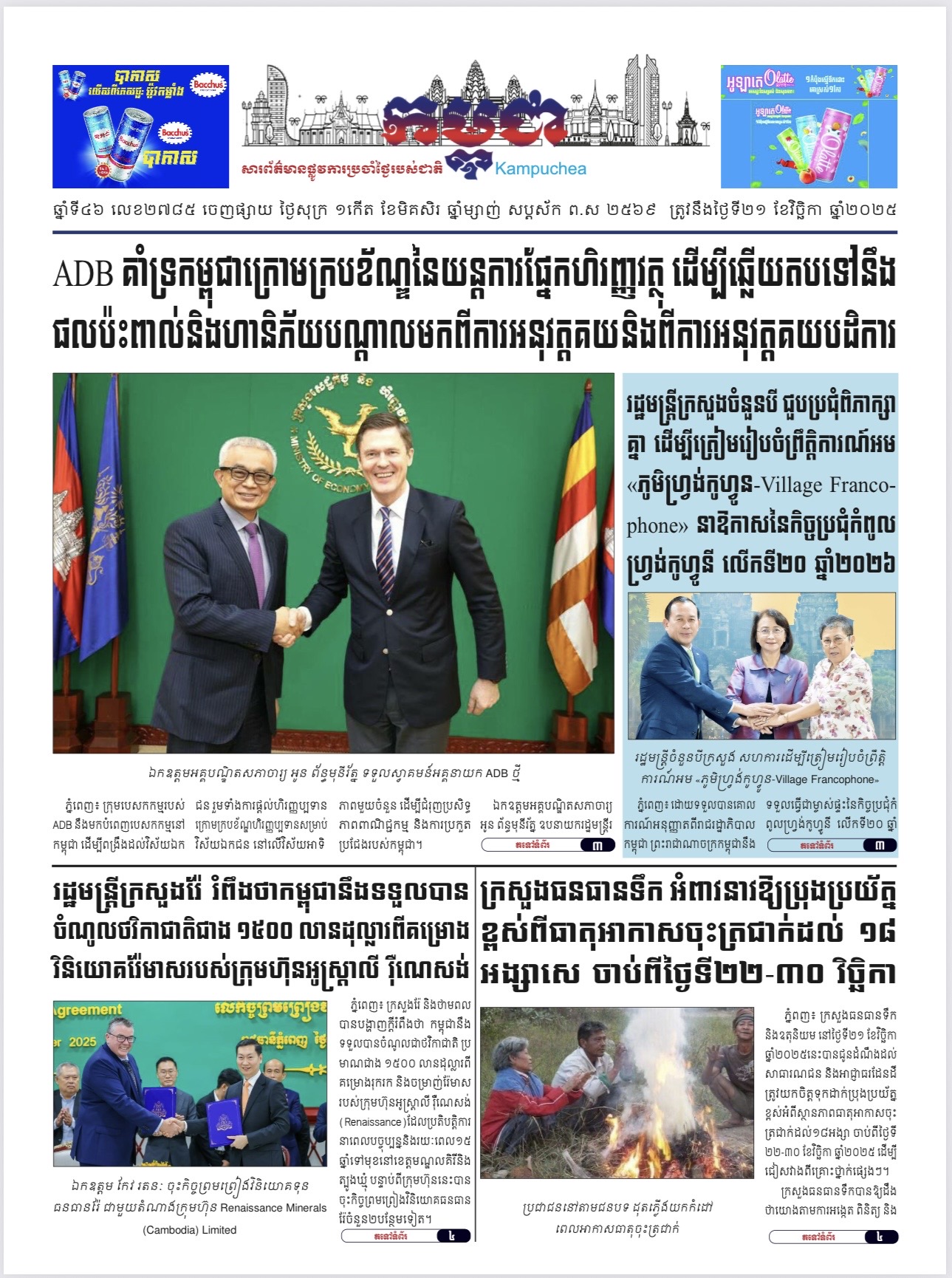 កាសែតកម្ពុជាលេខ២៧៨៥ ចេញផ្សាយថ្ងៃសុក្រ ទី២១ ខែវិច្ឆិកា ឆ្នាំ២០២៥