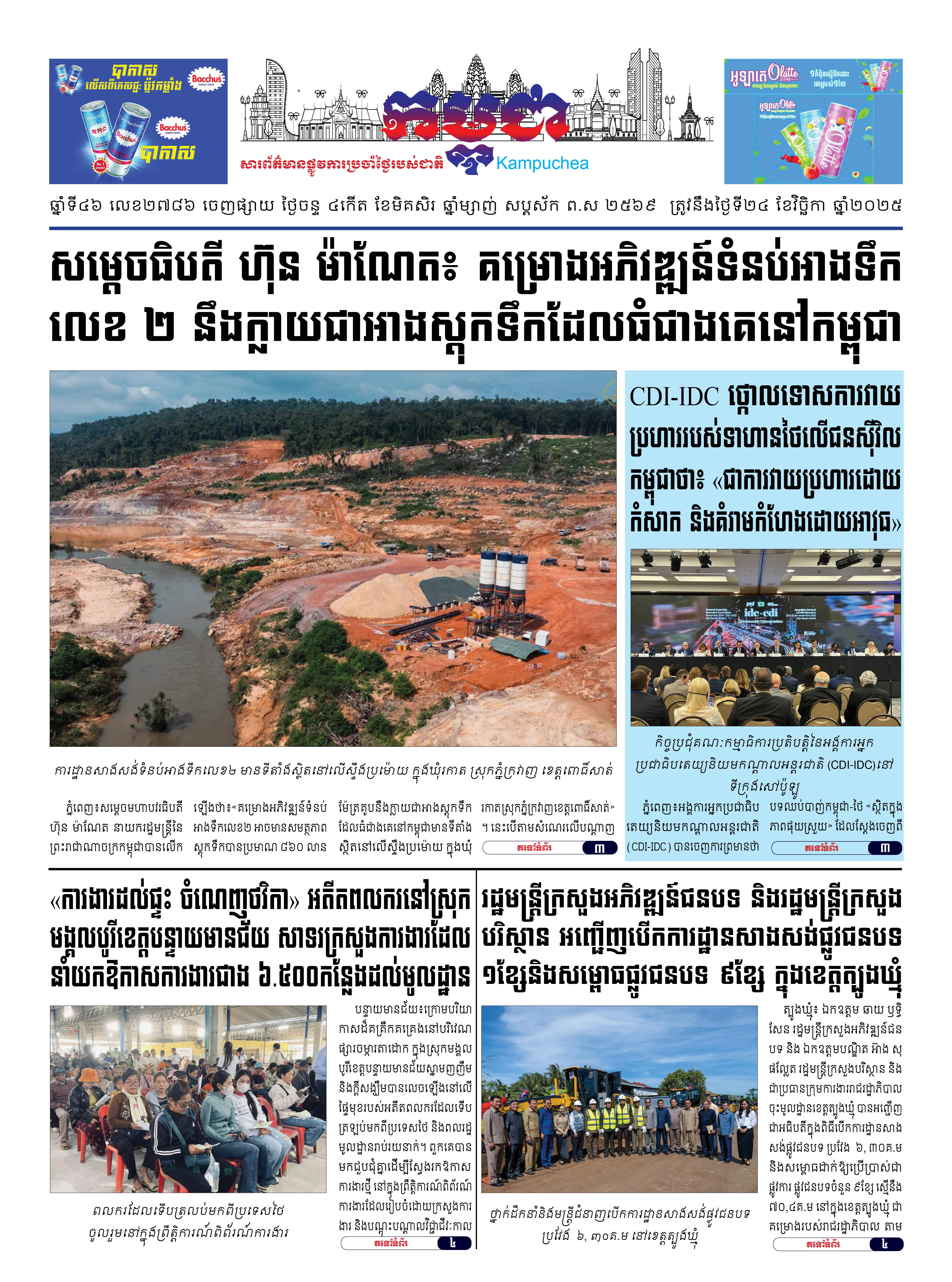 កាសែតកម្ពុជាលេខ២៧៨៦ ចេញផ្សាយថ្ងៃចន្ទ ទី២៤ ខែវិច្ឆិកា ឆ្នាំ២០២៥
