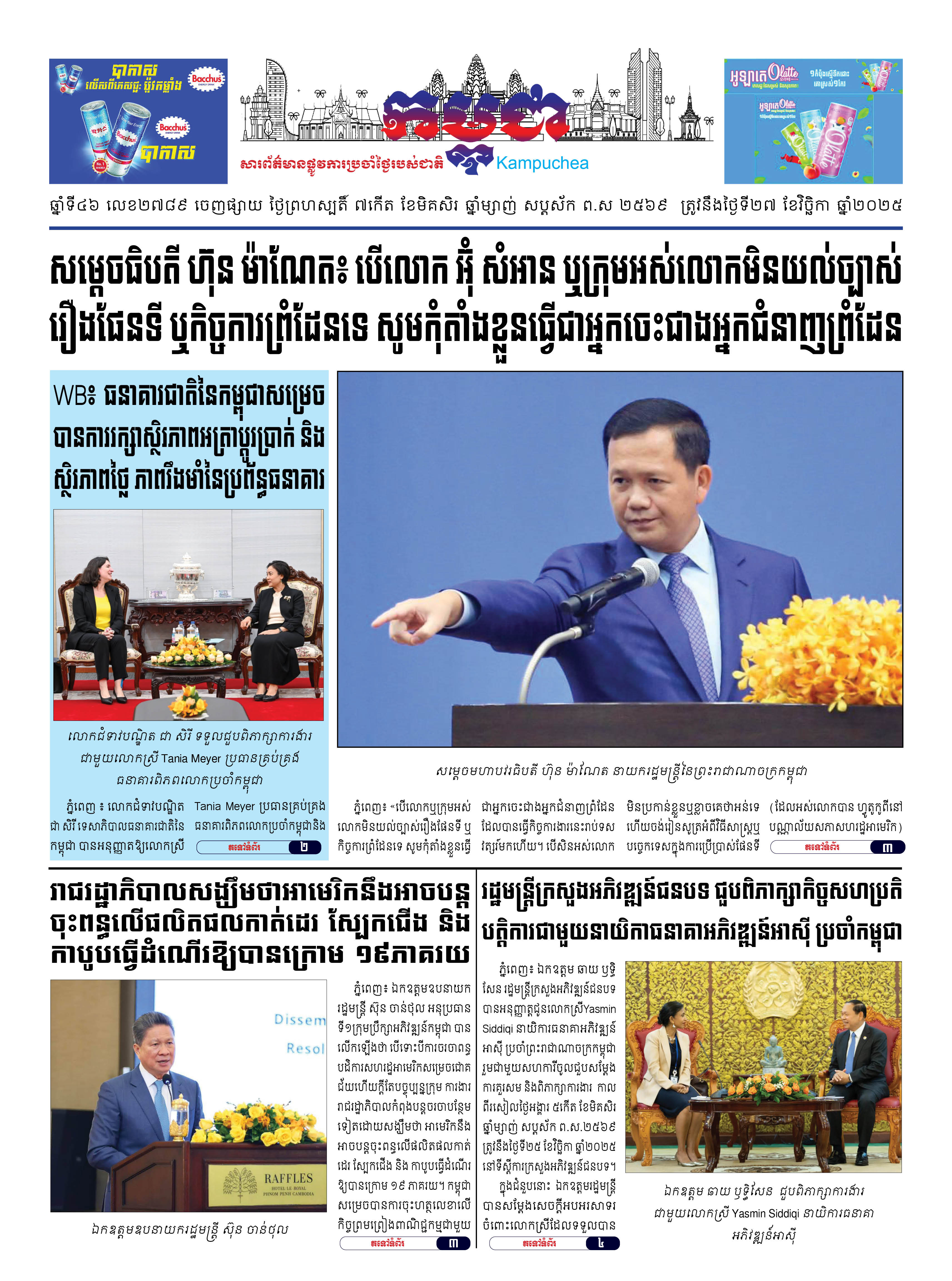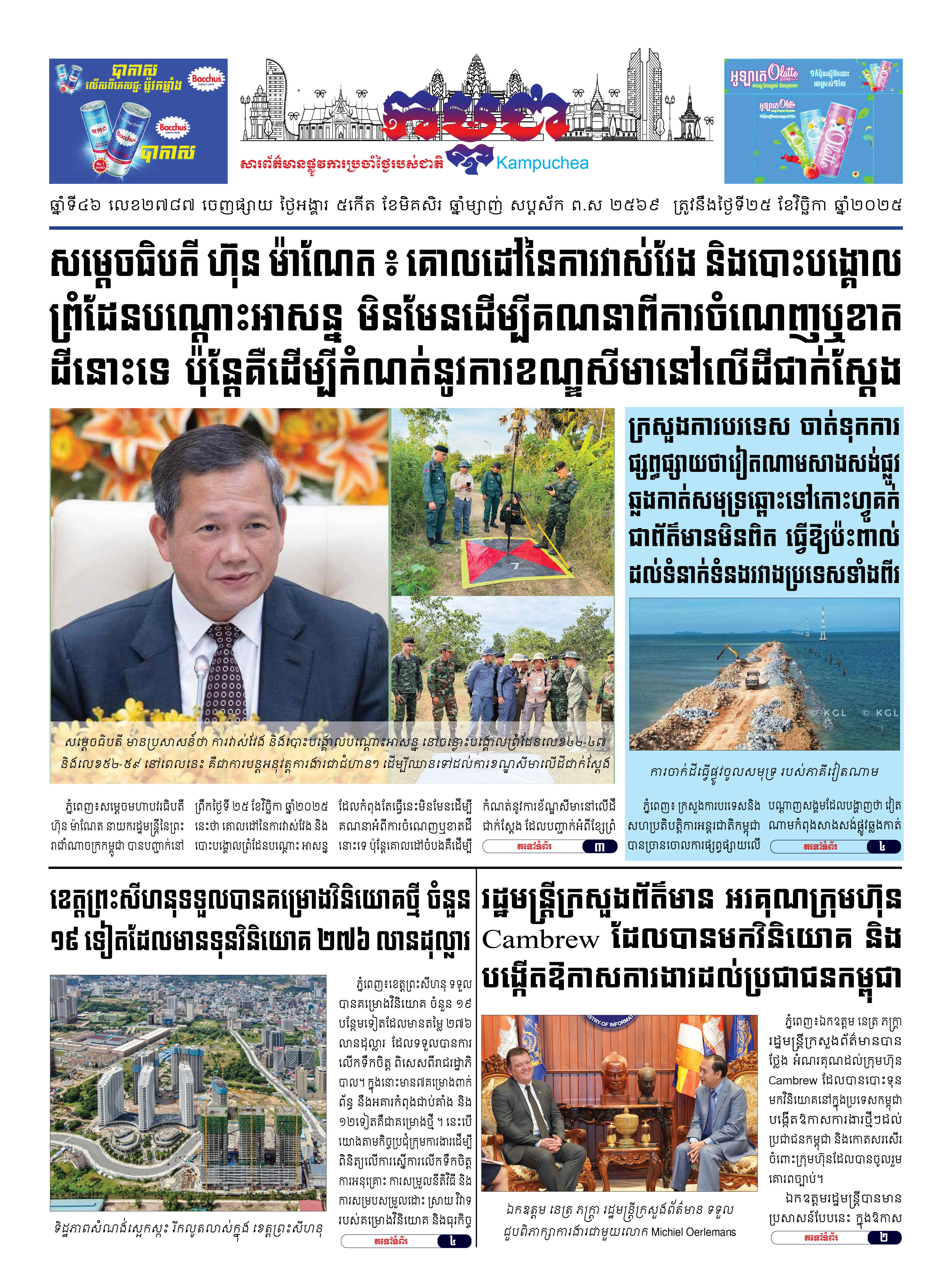 កាសែតកម្ពុជាលេខ២៧៨៧ ចេញផ្សាយថ្ងៃអង្គារ ទី២៥ ខែវិច្ឆិកា ឆ្នាំ២០២៥