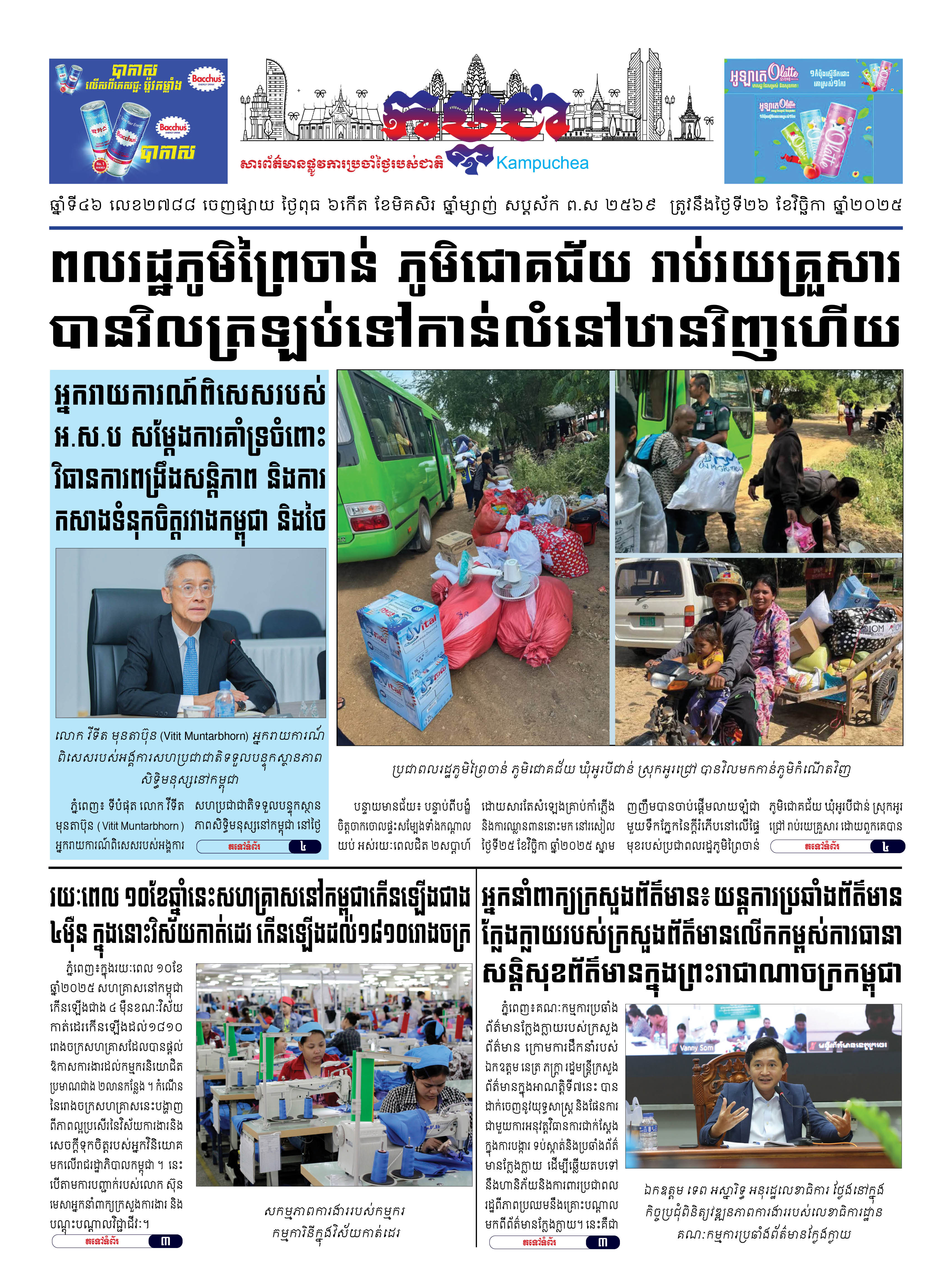 កាសែតកម្ពុជាលេខ២៧៨៨ ចេញផ្សាយថ្ងៃពុធ ទី២៦ ខែវិច្ឆិកា ឆ្នាំ២០២៥