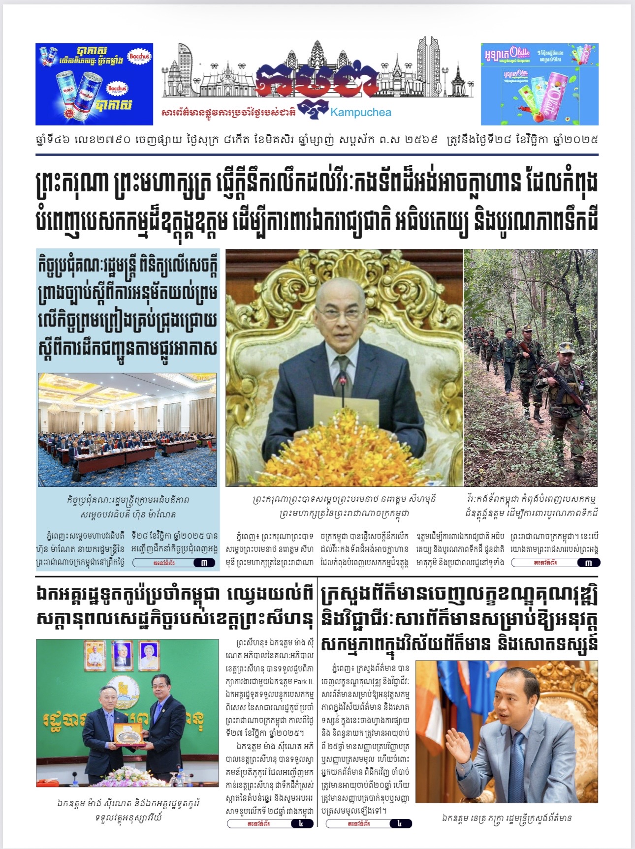 កាសែតកម្ពុជាលេខ២៧៩០ ចេញផ្សាយថ្ងៃសុក្រ ទី២៨ ខែវិច្ឆិកា ឆ្នាំ២០២៥