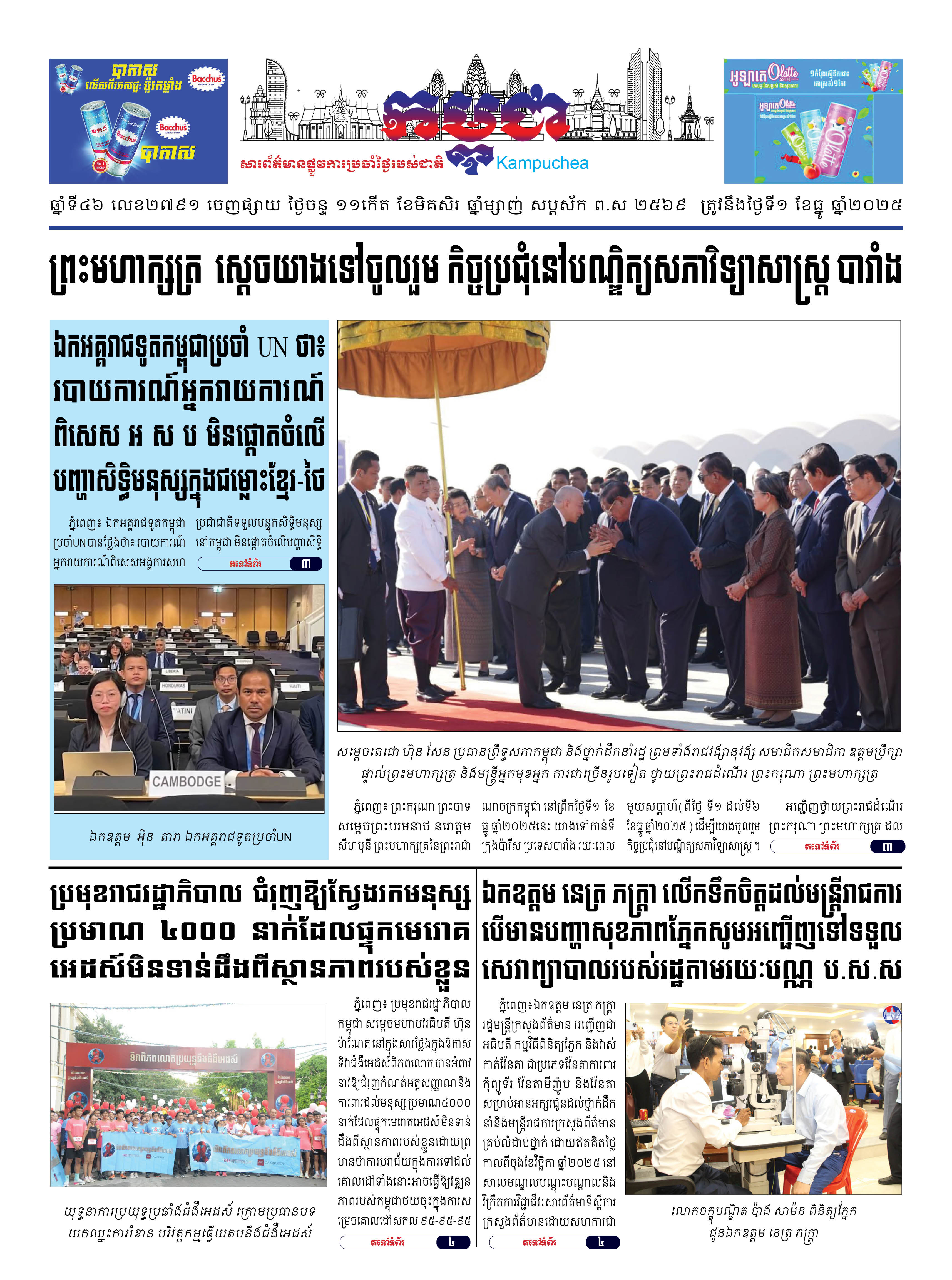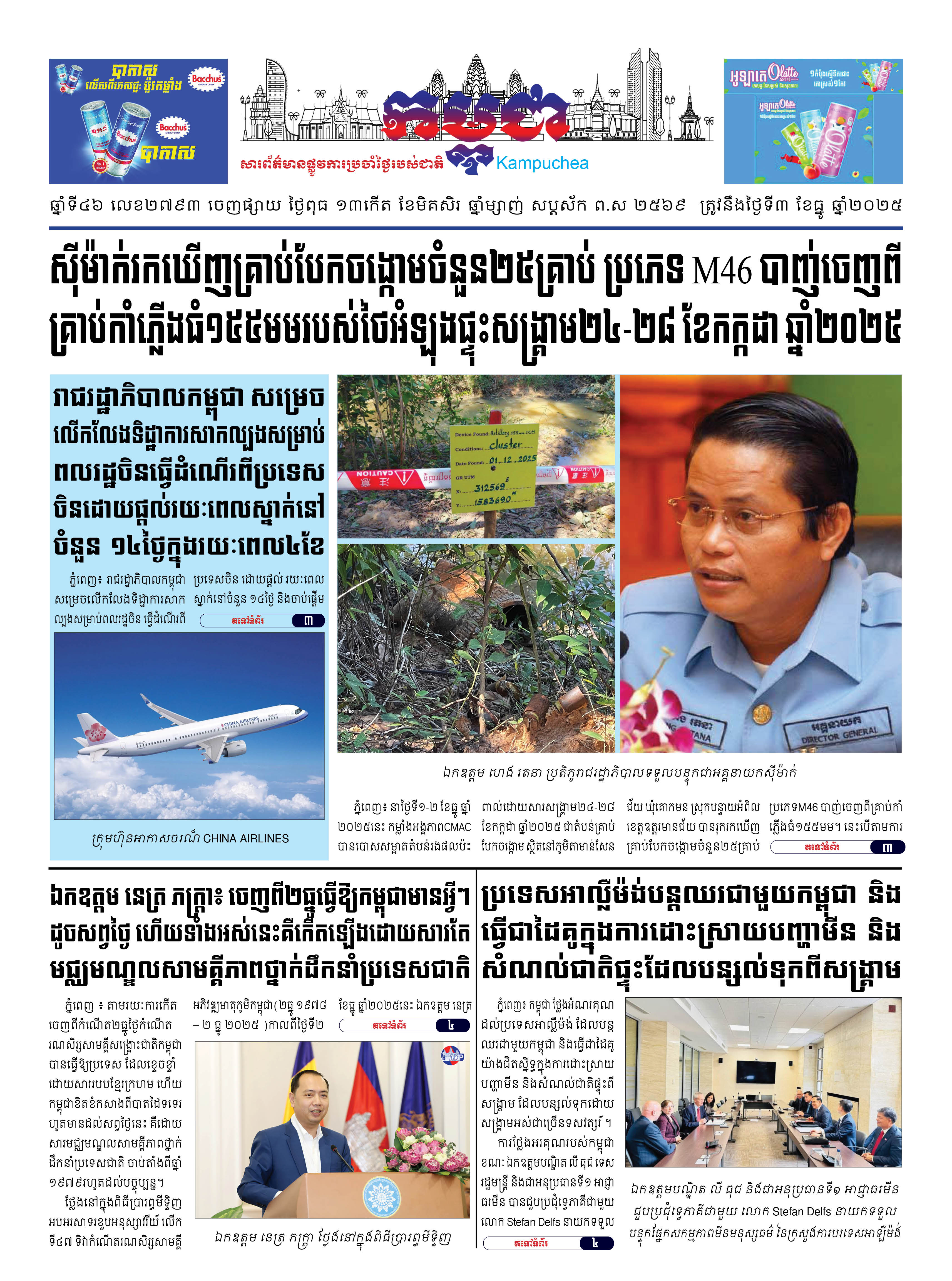 កាសែតកម្ពុជាលេខ២៧៩៣ ចេញផ្សាយថ្ងៃពុធ ទី០៣ ខែធ្នូ ឆ្នាំ២០២៥