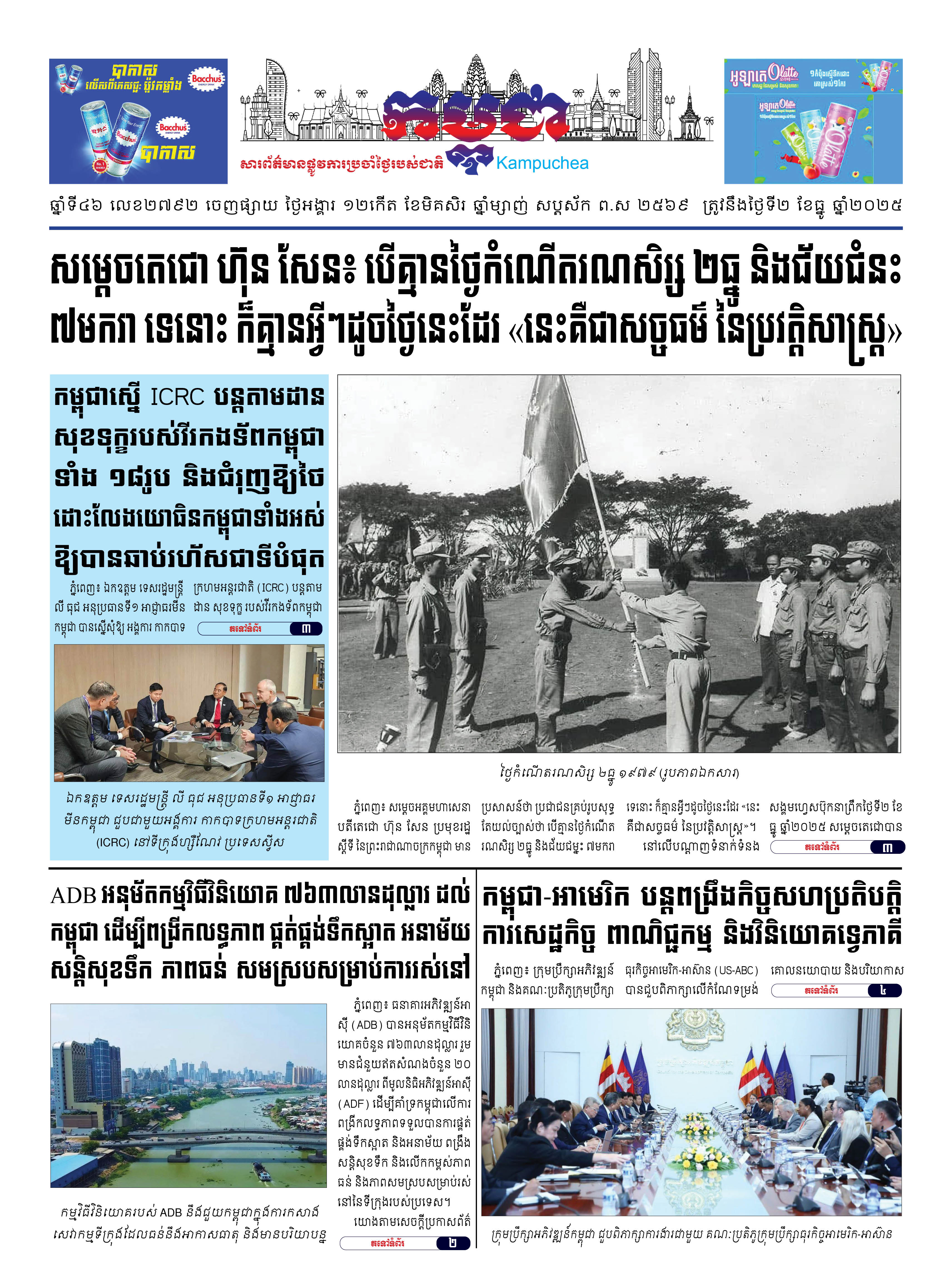 កាសែតកម្ពុជាលេខ២៧៩២ ចេញផ្សាយថ្ងៃអង្គារ ទី០២ ខែធ្នូ ឆ្នាំ២០២៥