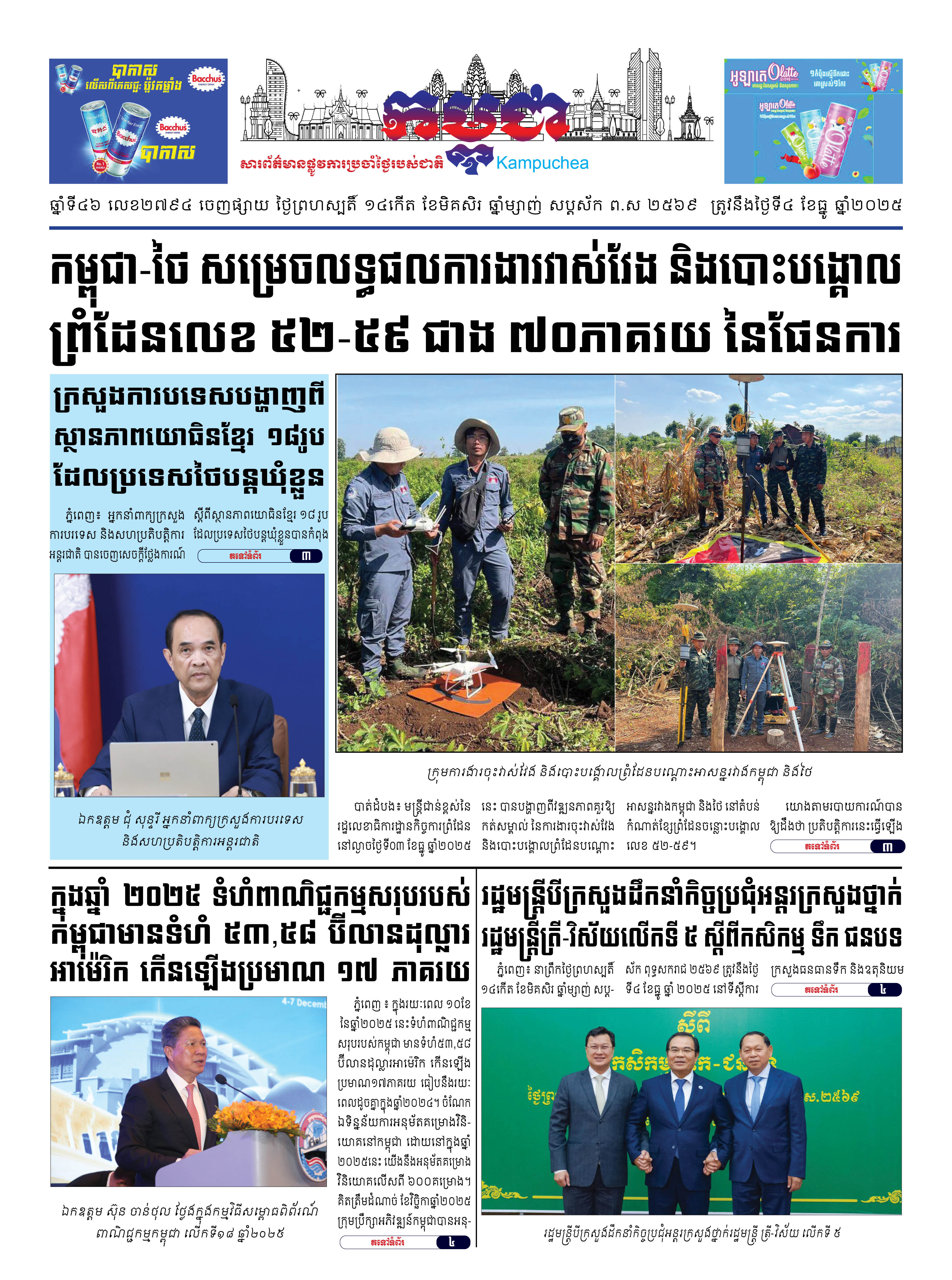 កាសែតកម្ពុជាលេខ២៧៩៤ ចេញផ្សាយថ្ងៃព្រហស្បតិ៍ ទី០៤ ខែធ្នូ ឆ្នាំ២០២៥