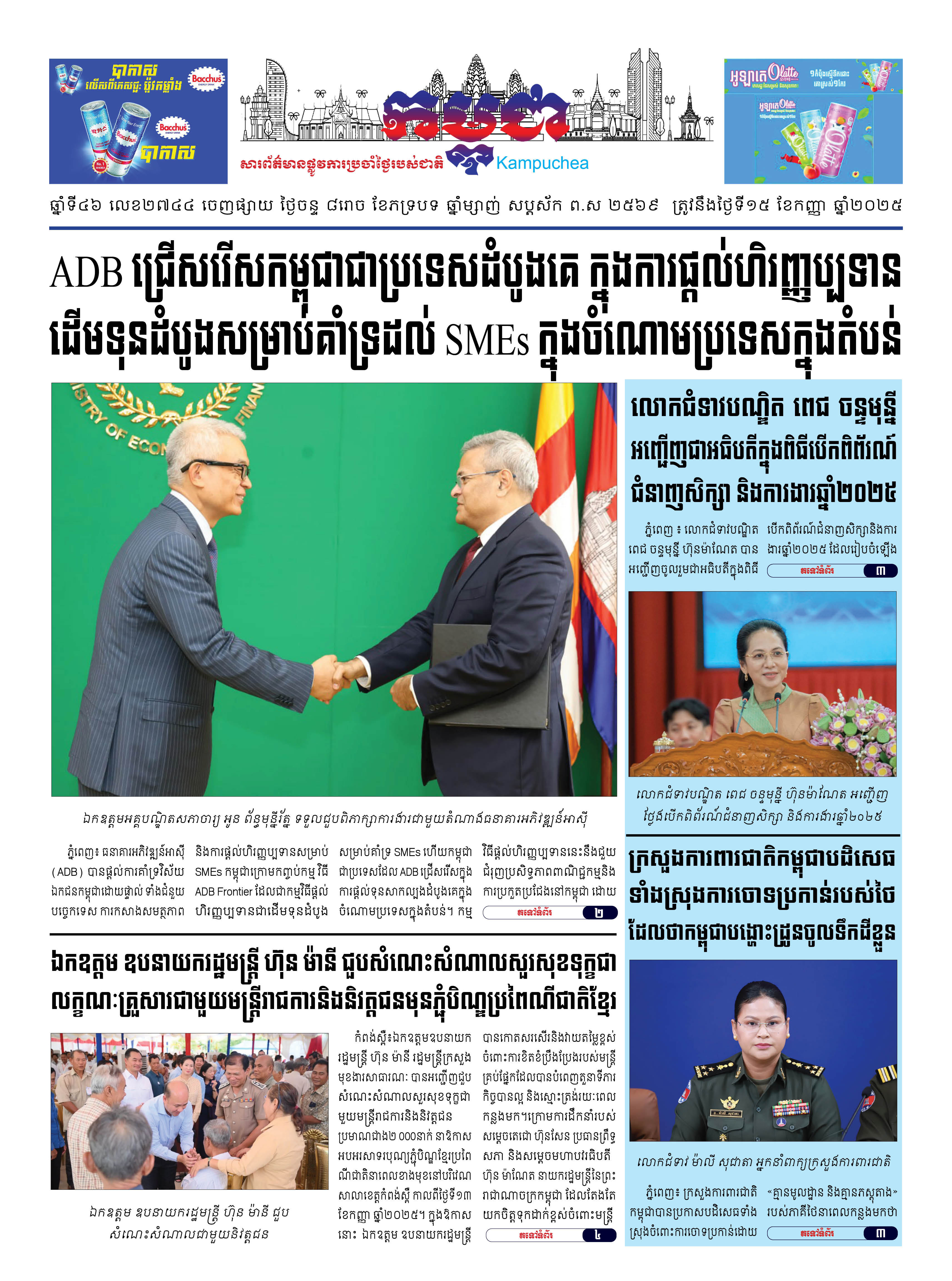 កាសែតកម្ពុជាលេខ២៧៤៤ ចេញផ្សាយថ្ងៃចន្ទ ទី១៥ ខែកញ្ញា ឆ្នាំ២០២៥