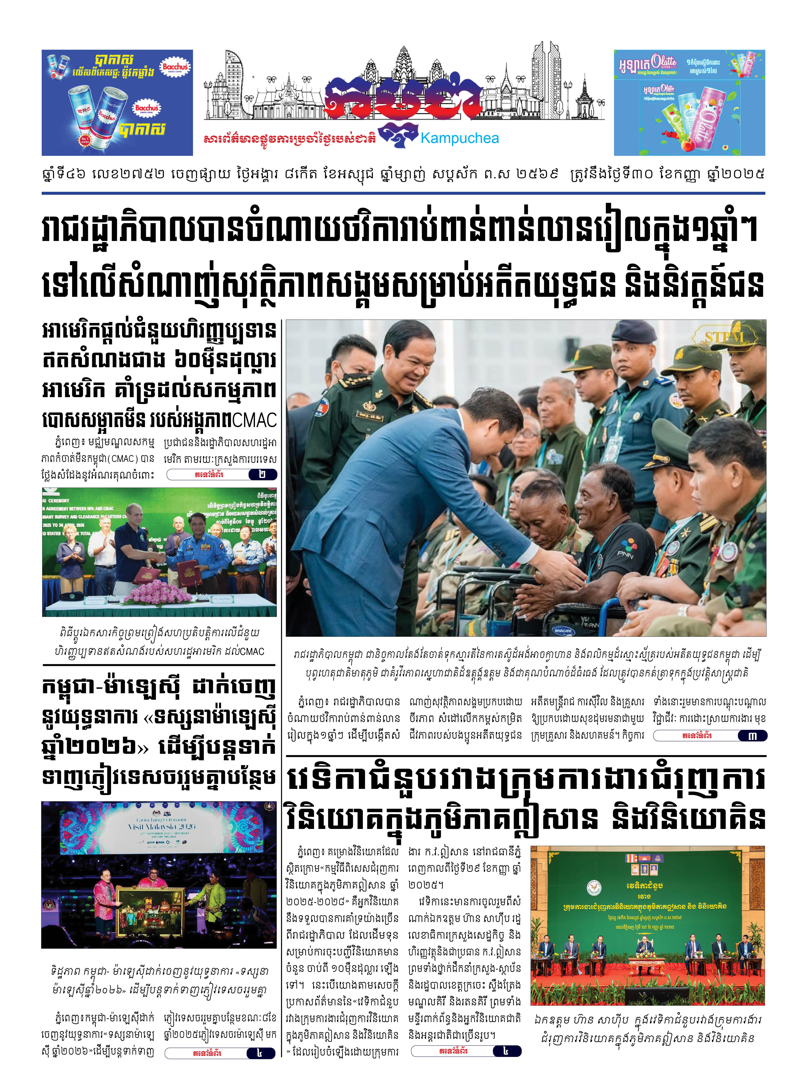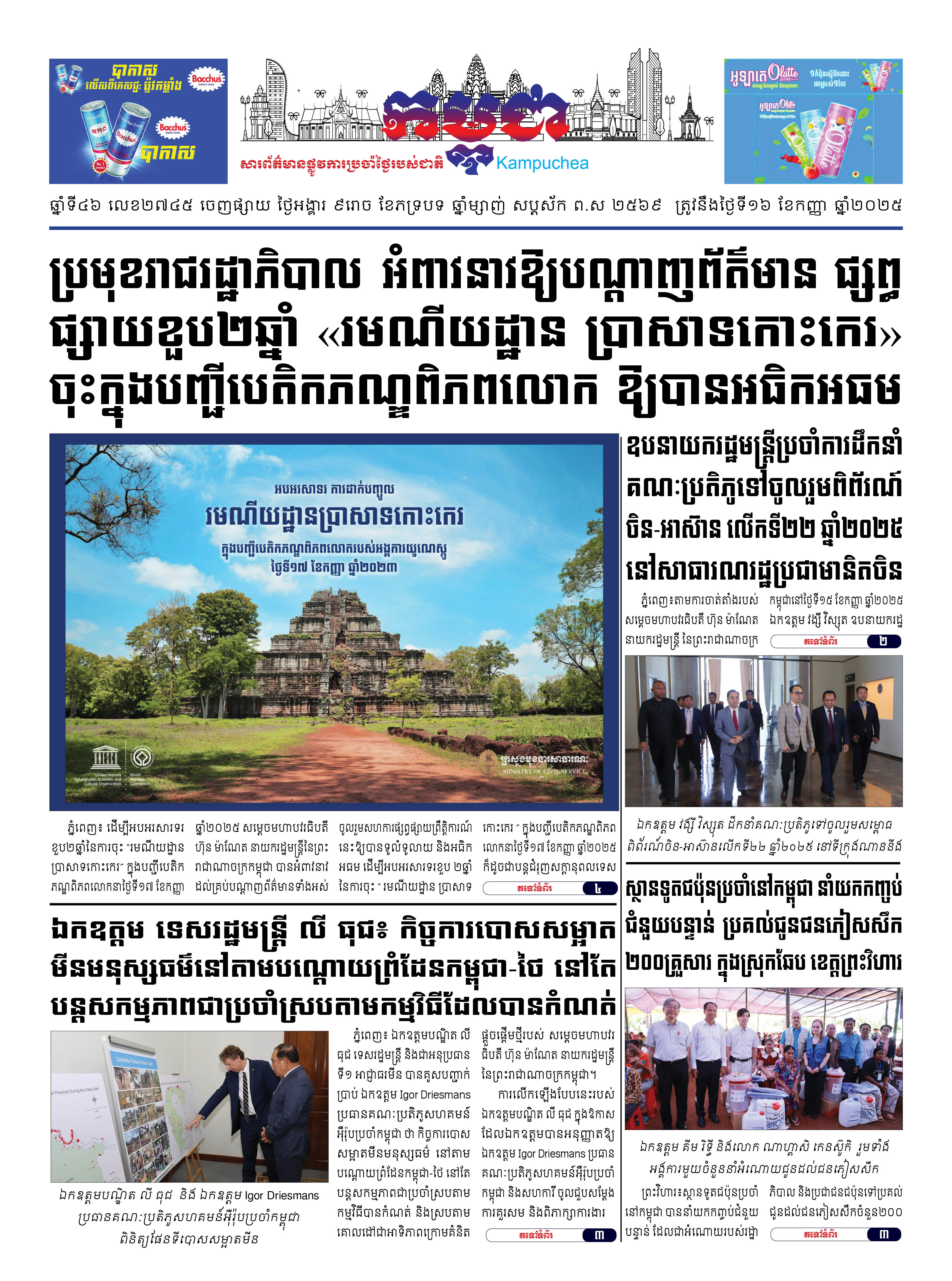 កាសែតកម្ពុជាលេខ២៧៤៥ ចេញផ្សាយថ្ងៃអង្គារ ទី១៦ ខែកញ្ញា ឆ្នាំ២០២៥
