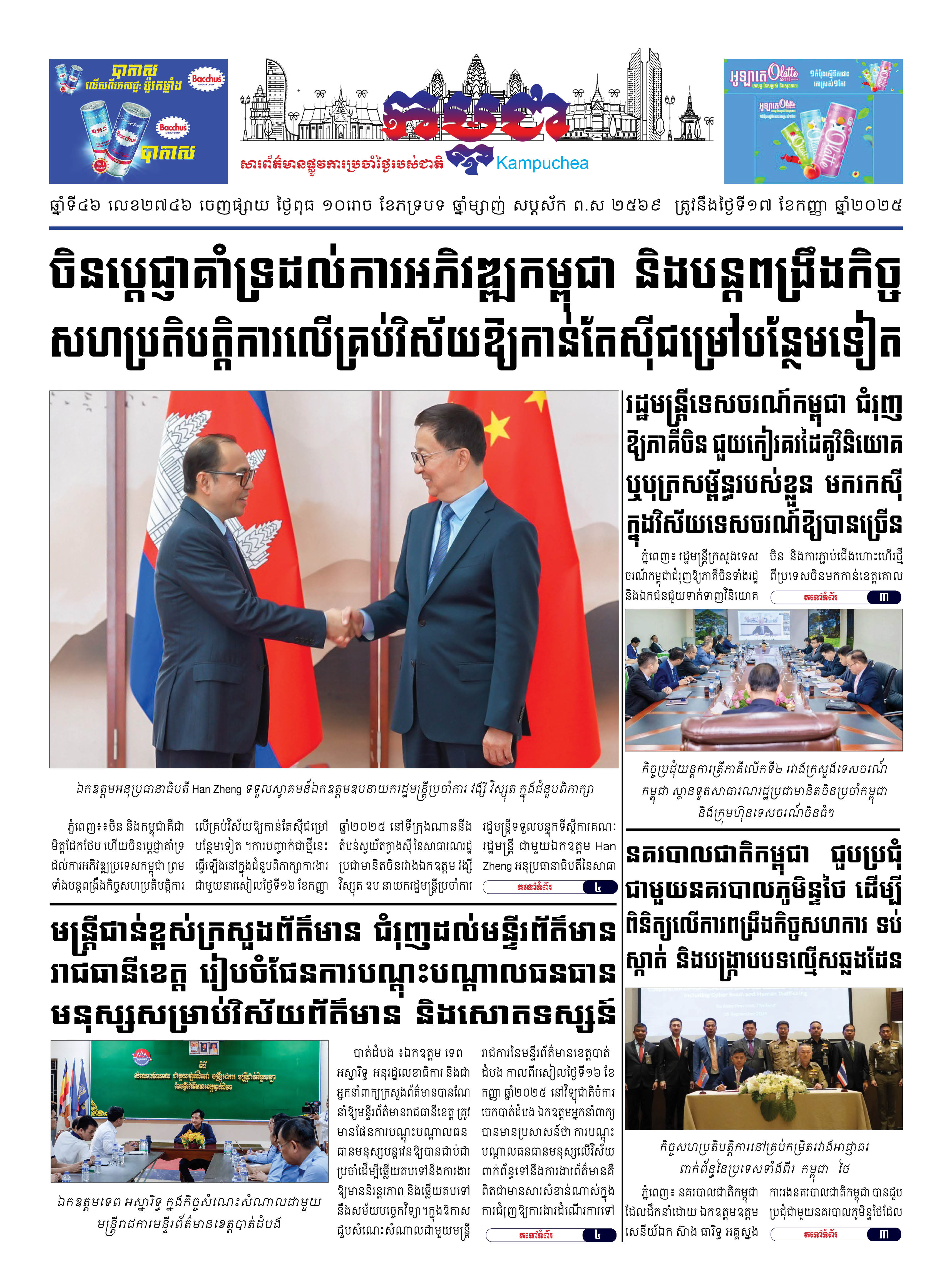 កាសែតកម្ពុជាលេខ២៧៤៦ ចេញផ្សាយថ្ងៃពុធ ទី១៧ ខែកញ្ញា ឆ្នាំ២០២៥