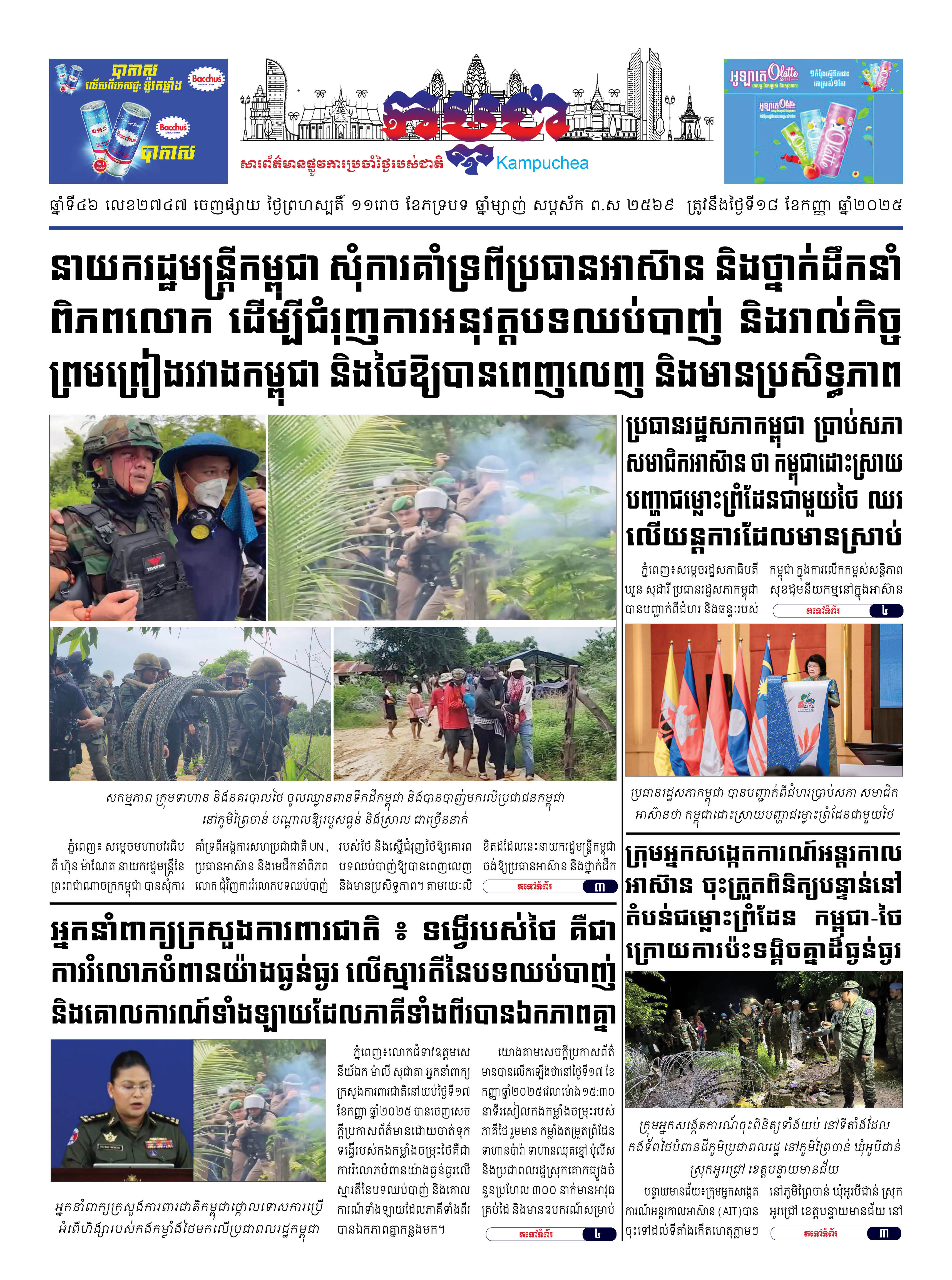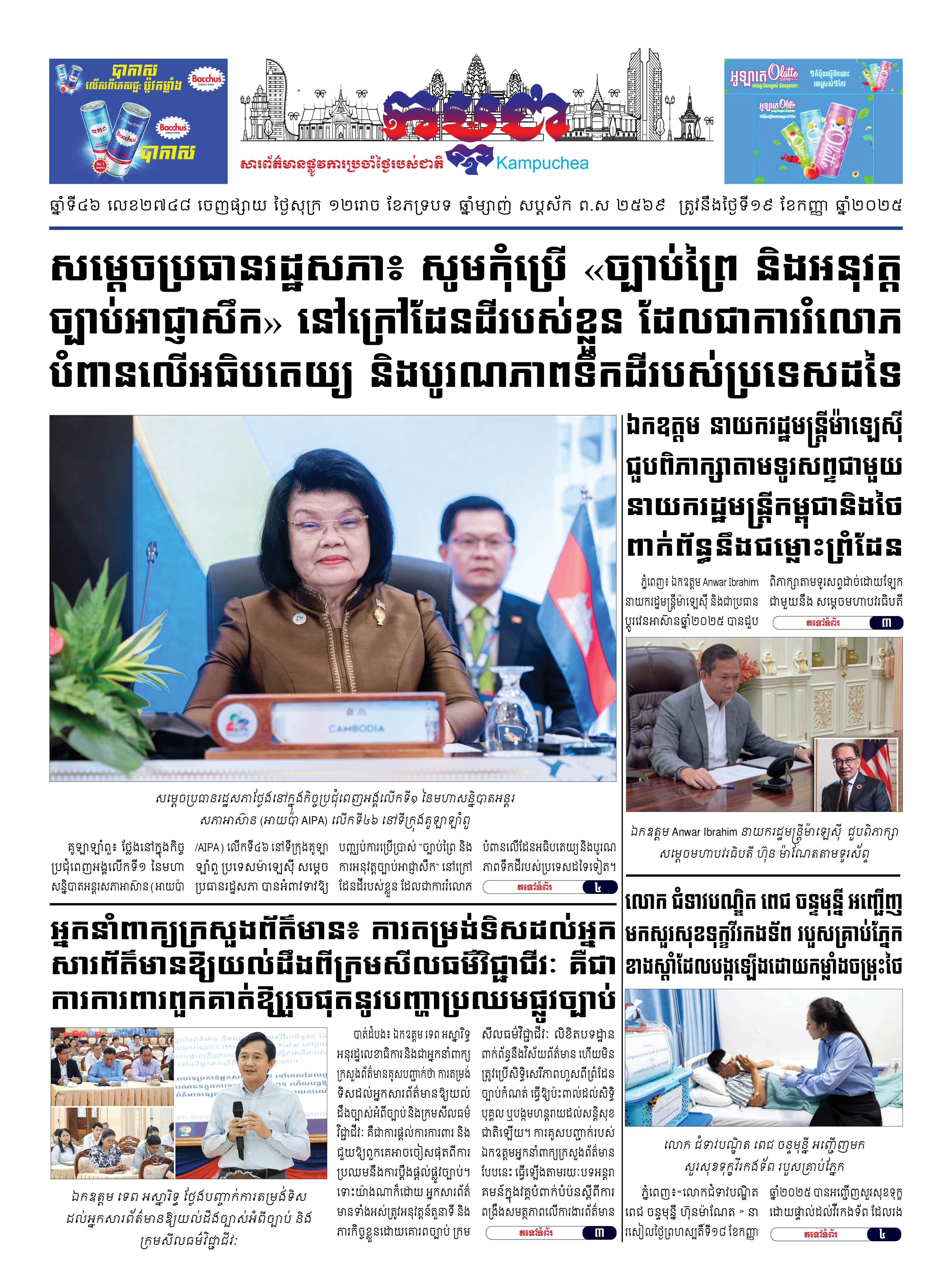 កាសែតកម្ពុជាលេខ២៧៤៨ ចេញផ្សាយថ្ងៃសុក្រ ទី១៩ ខែកញ្ញា ឆ្នាំ២០២៥