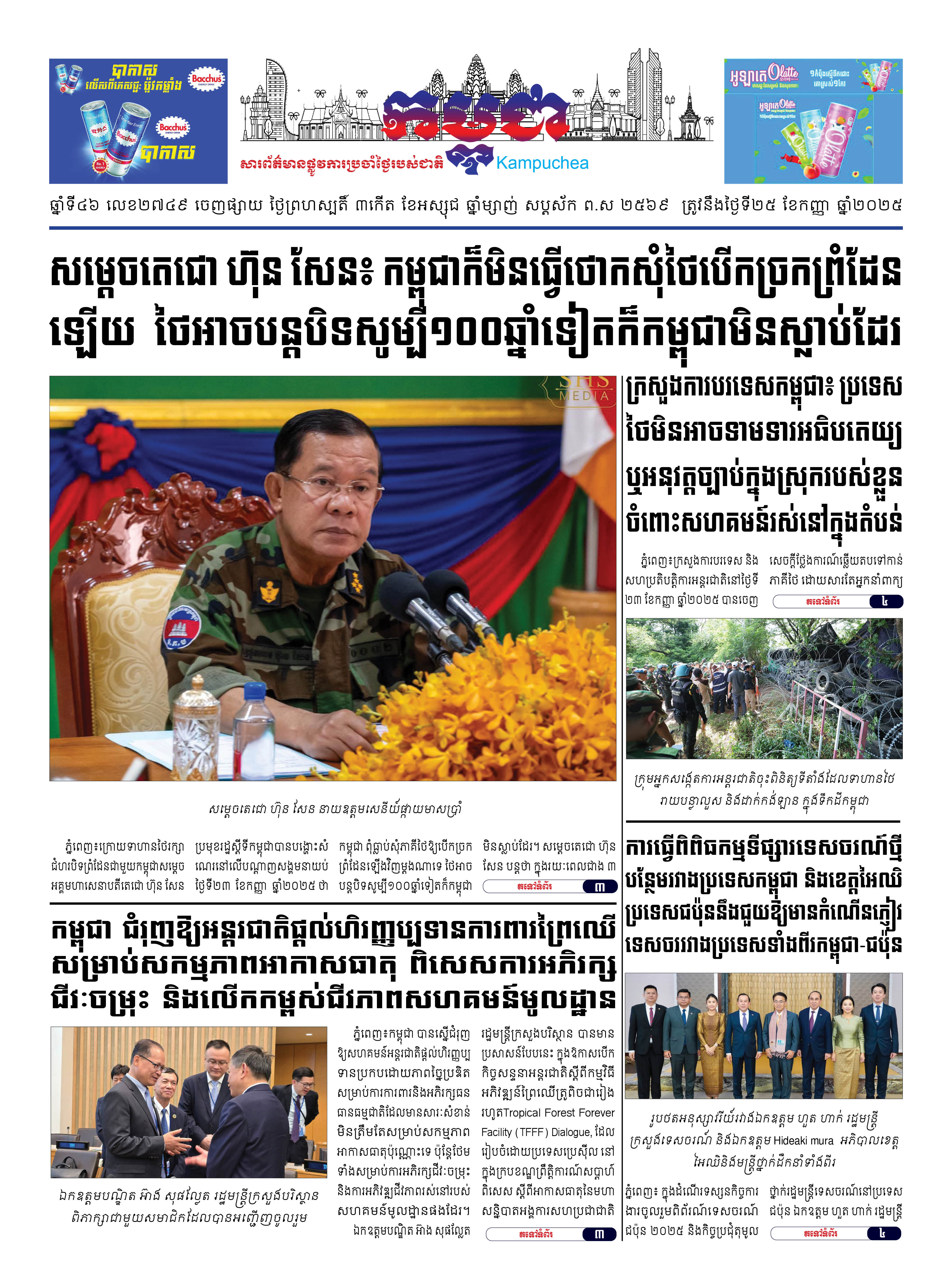 កាសែតកម្ពុជាលេខ២៧៤៩ ចេញផ្សាយថ្ងៃព្រហស្បតិ៍ ទី២៥ ខែកញ្ញា ឆ្នាំ២០២៥