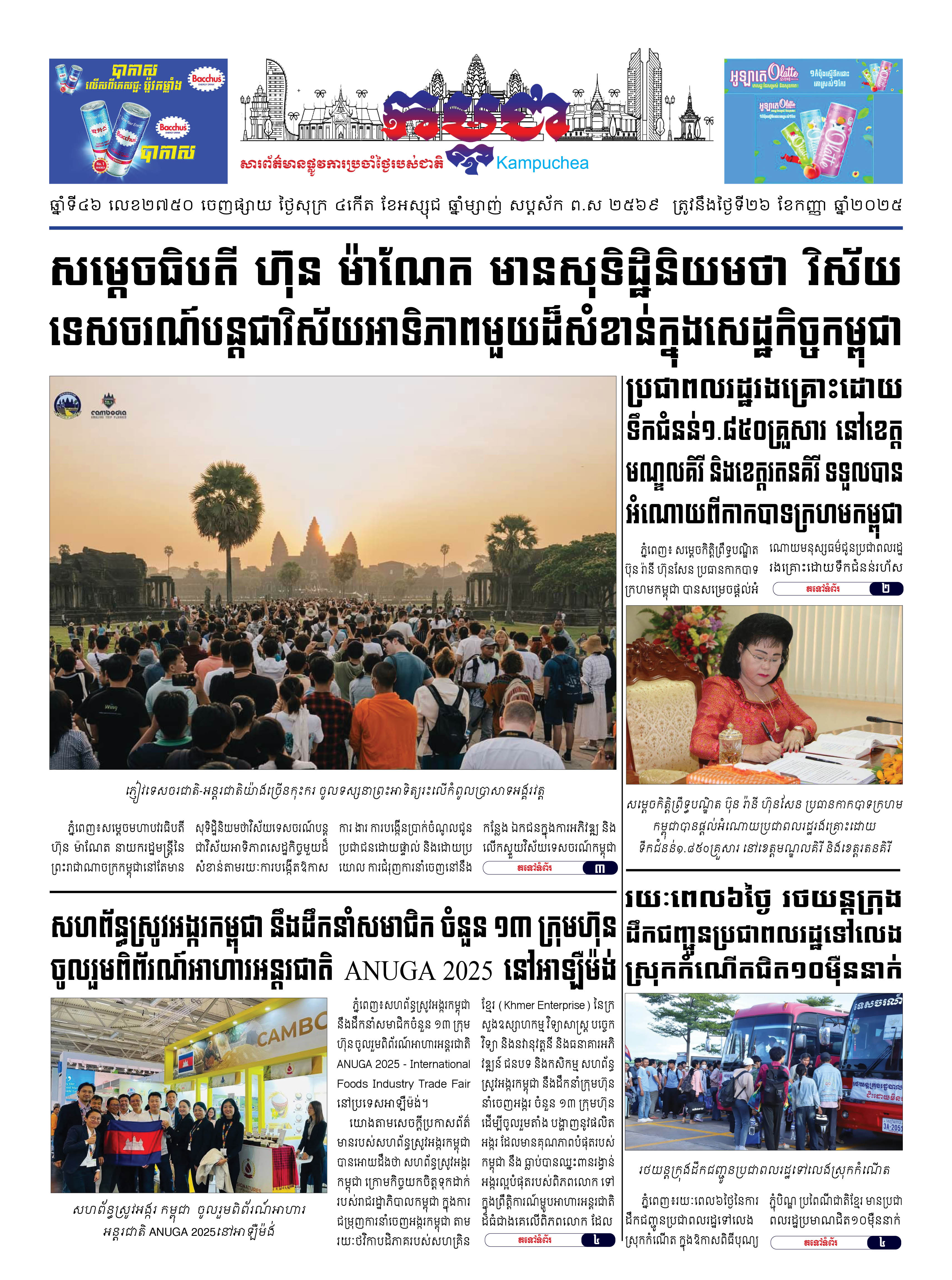 កាសែតកម្ពុជាលេខ២៧៥០ ចេញផ្សាយថ្ងៃសុក្រ ទី២៦ ខែកញ្ញា ឆ្នាំ២០២៥