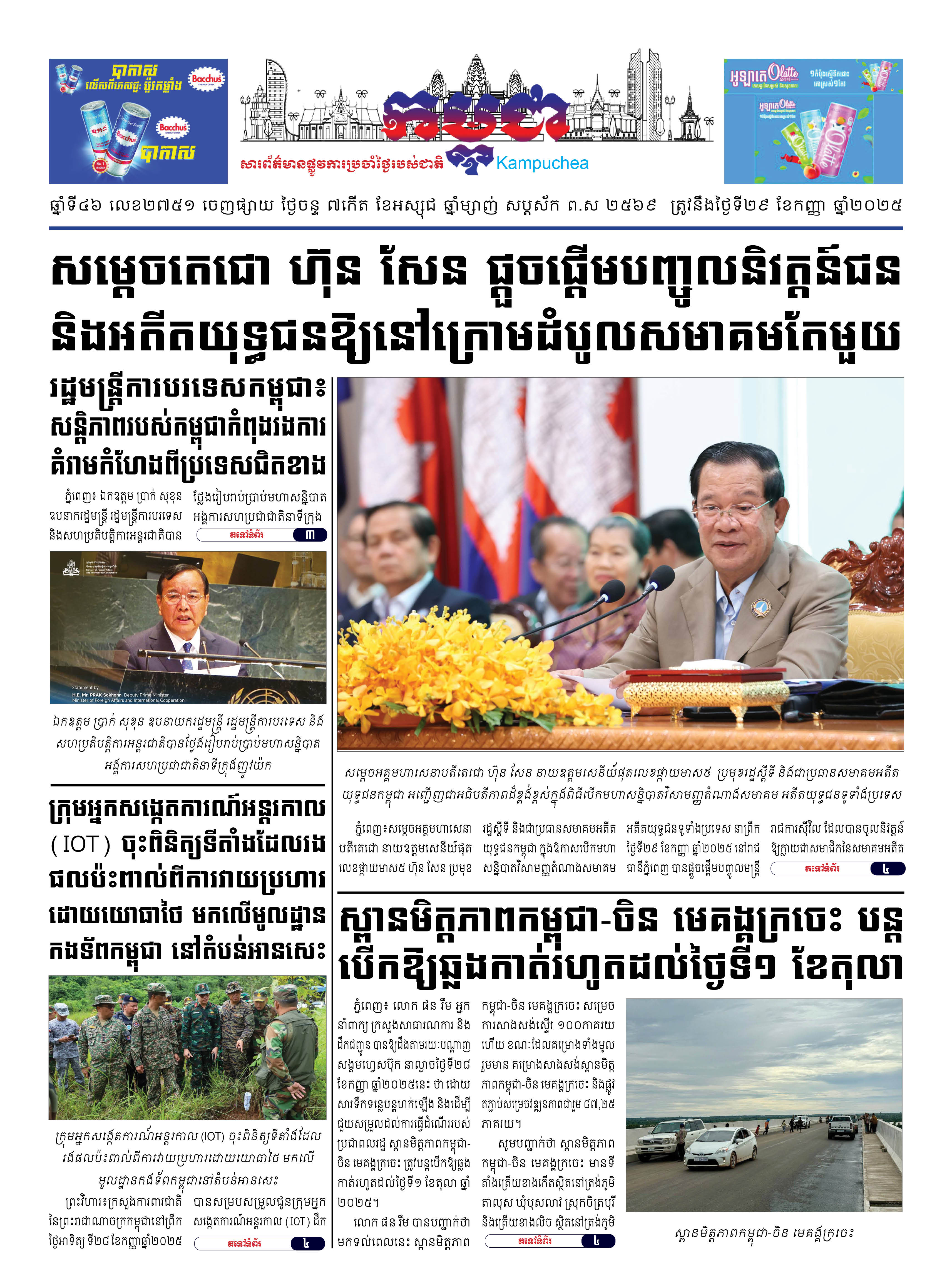 កាសែតកម្ពុជាលេខ២៧៥១ ចេញផ្សាយថ្ងៃចន្ទ ទី២៩ ខែកញ្ញា ឆ្នាំ២០២៥