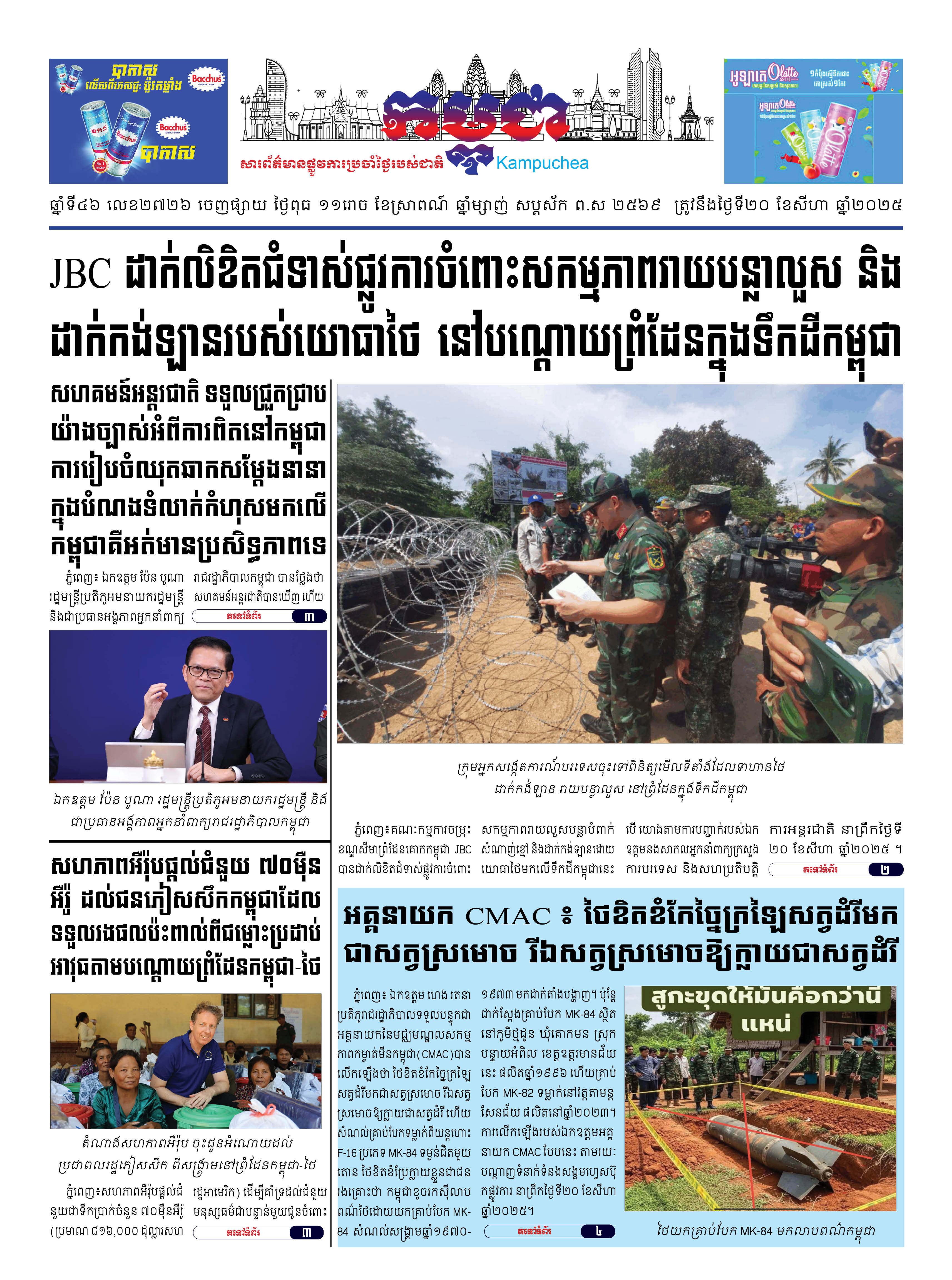 កាសែតកម្ពុជាលេខ២៧២៦ ចេញផ្សាយថ្ងៃពុធ ទី២០ ខែសីហា ឆ្នាំ២០២៥