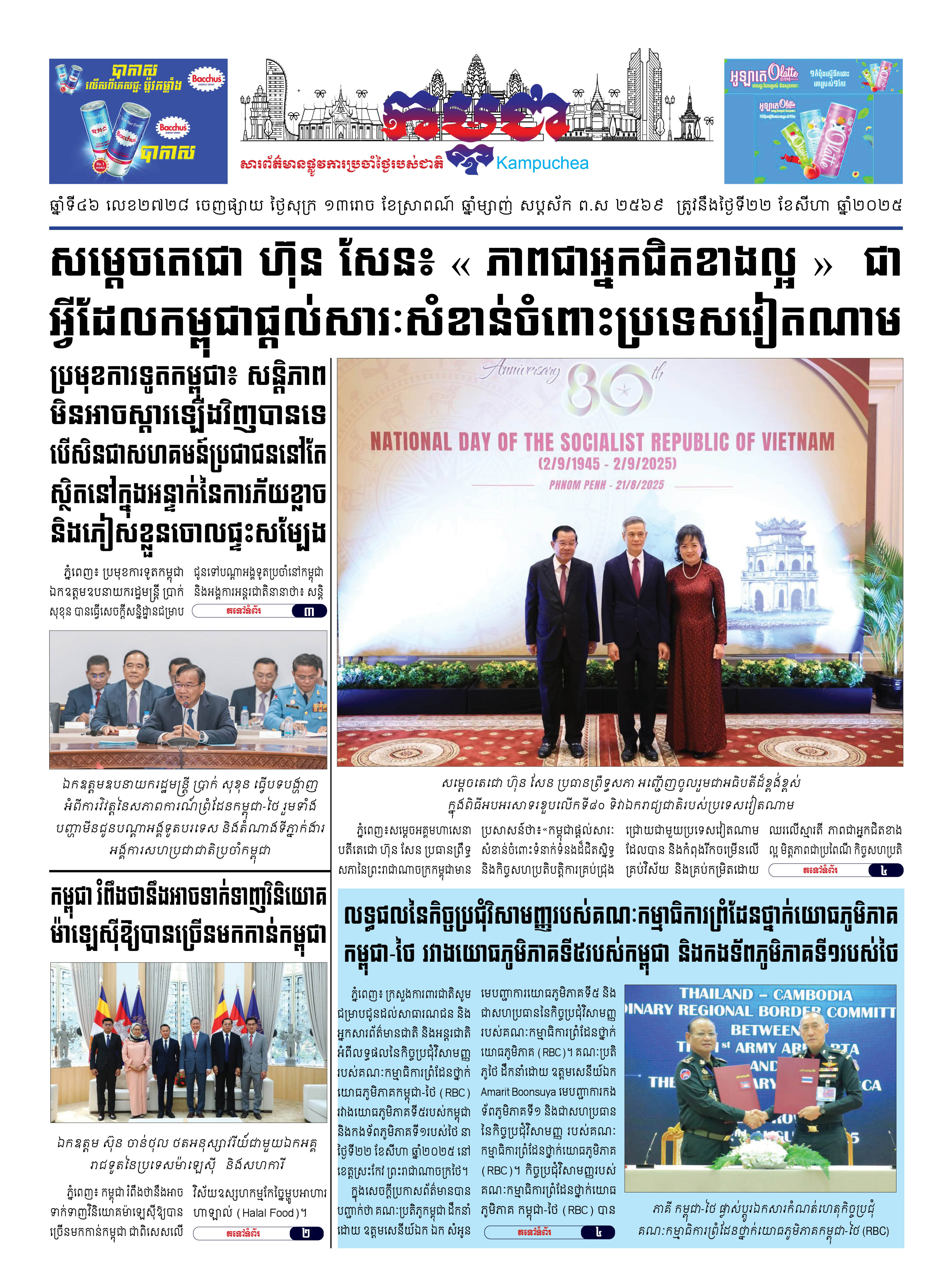 កាសែតកម្ពុជាលេខ២៧២៨ ចេញផ្សាយថ្ងៃសុក្រ ទី២២ ខែសីហា ឆ្នាំ២០២៥