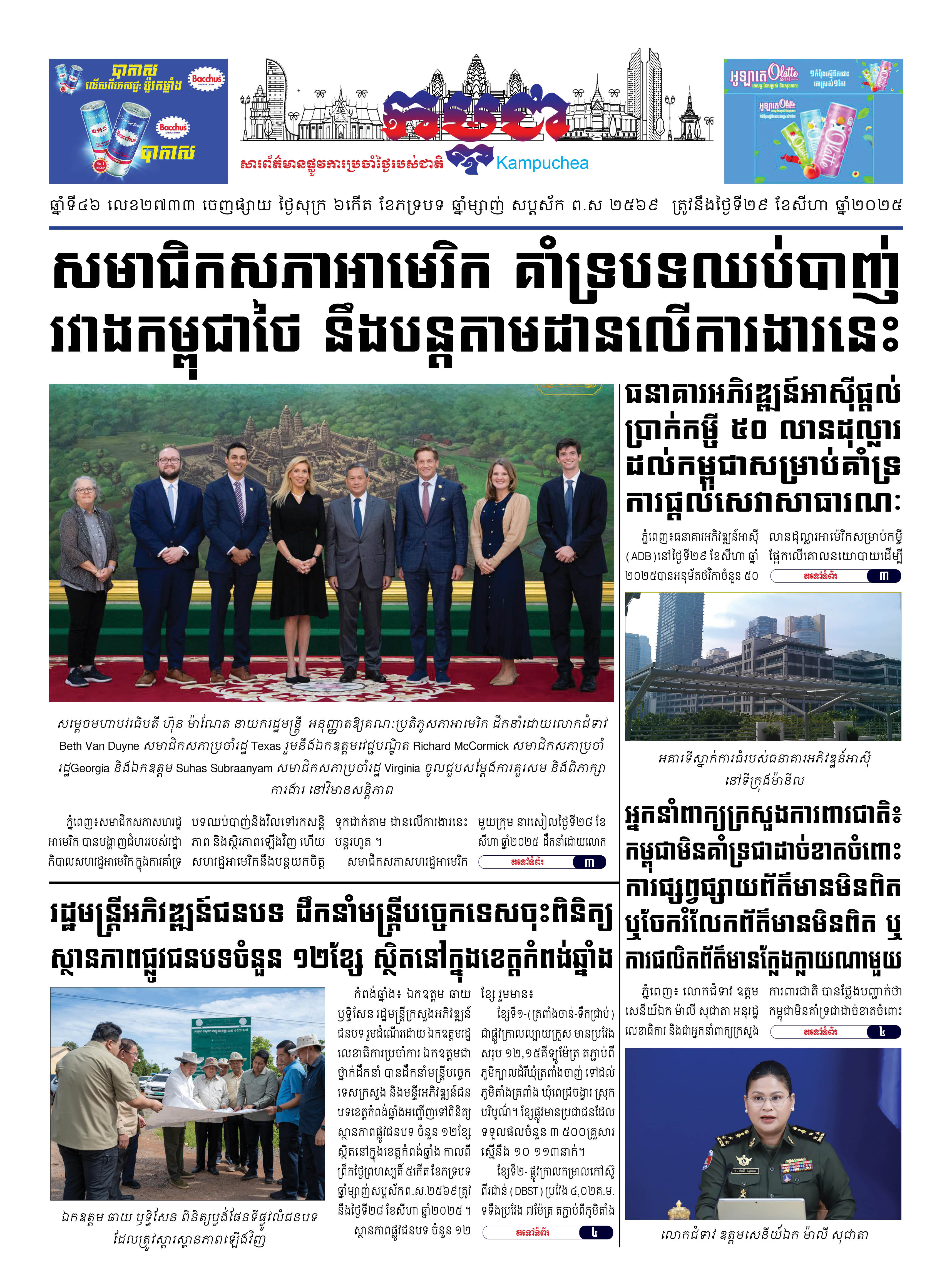 កាសែតកម្ពុជាលេខ២៧៣៣ ចេញផ្សាយថ្ងៃសុក្រ ទី២៩ ខែសីហា ឆ្នាំ២០២៥
