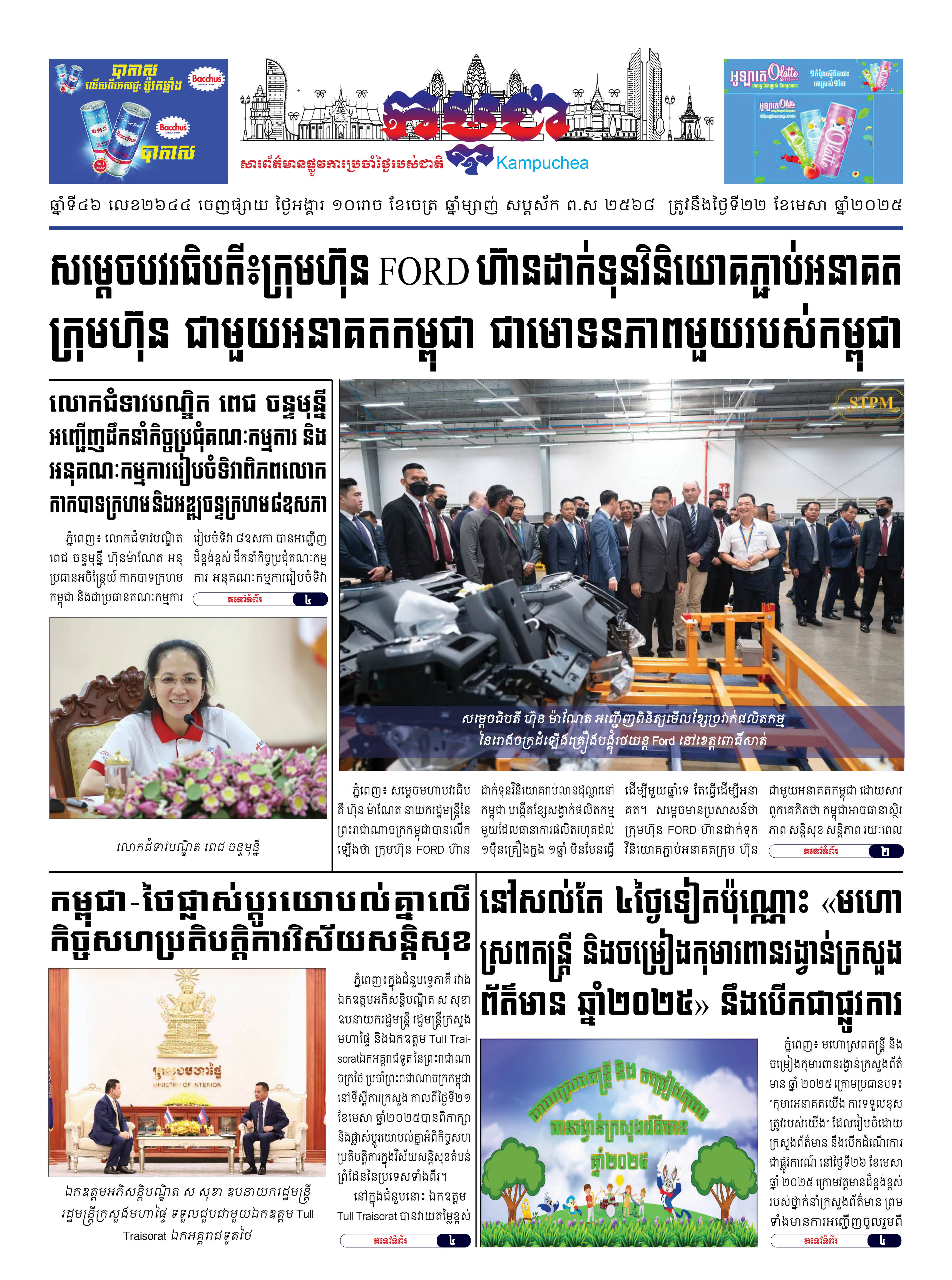 កាសែតកម្ពុជាលេខ២៦៤៤ ចេញផ្សាយថ្ងៃអង្គារ ទី២២ ខែមេសា ឆ្នាំ២០២៥