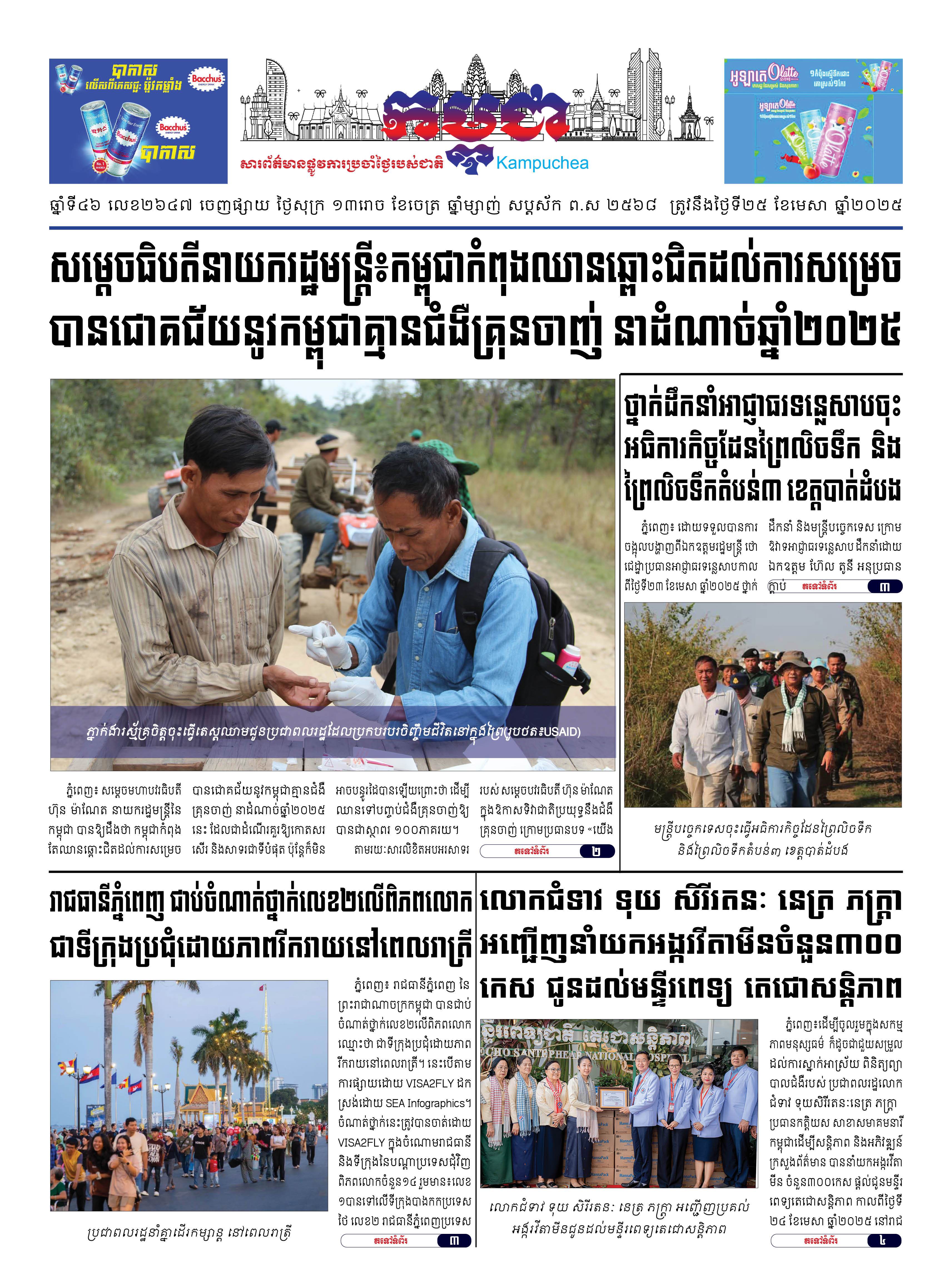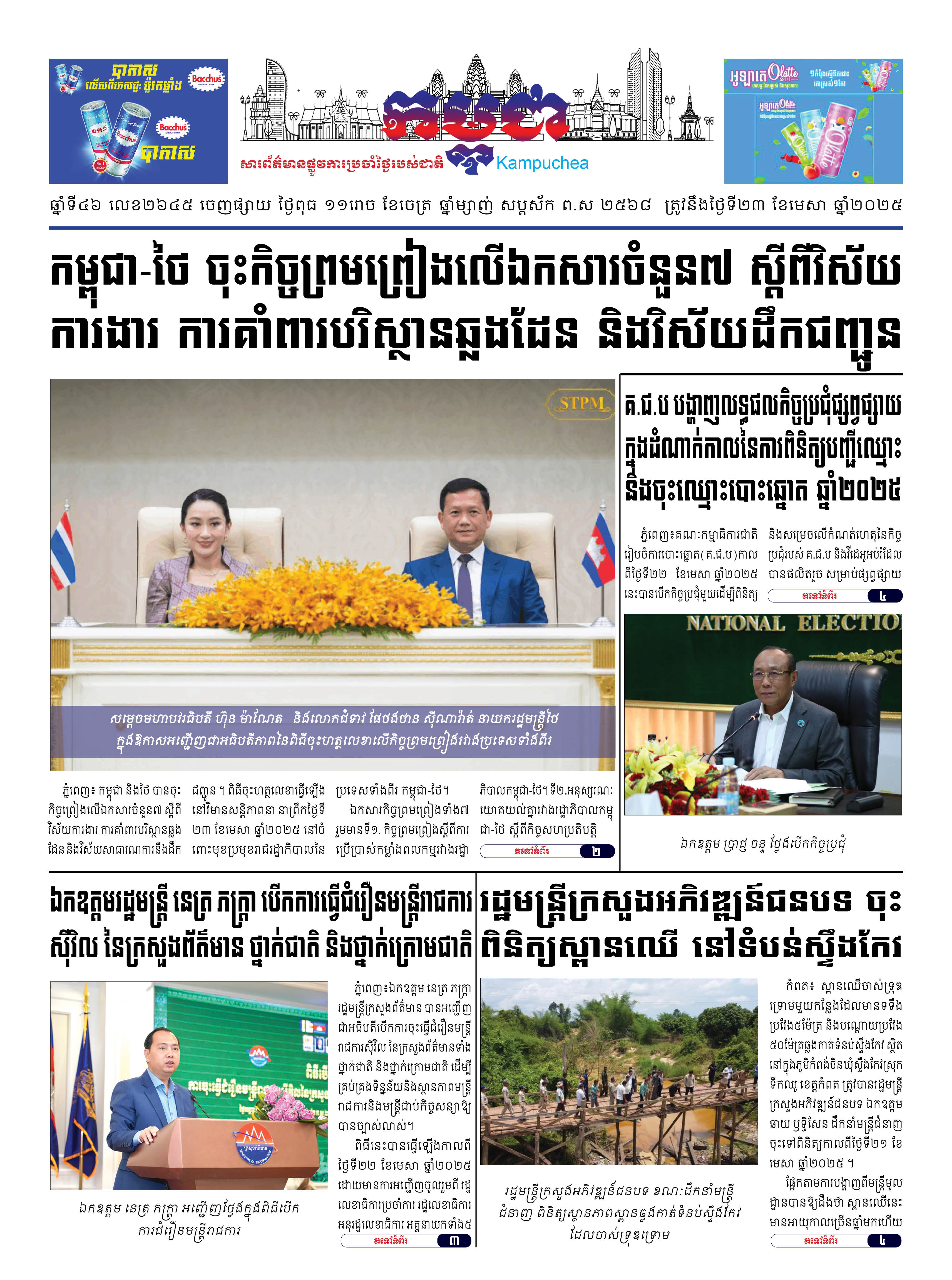 កាសែតកម្ពុជាលេខ២៦៤៧ ចេញផ្សាយថ្ងៃសុក្រ ទី២៥ ខែមេសា ឆ្នាំ២០២៥