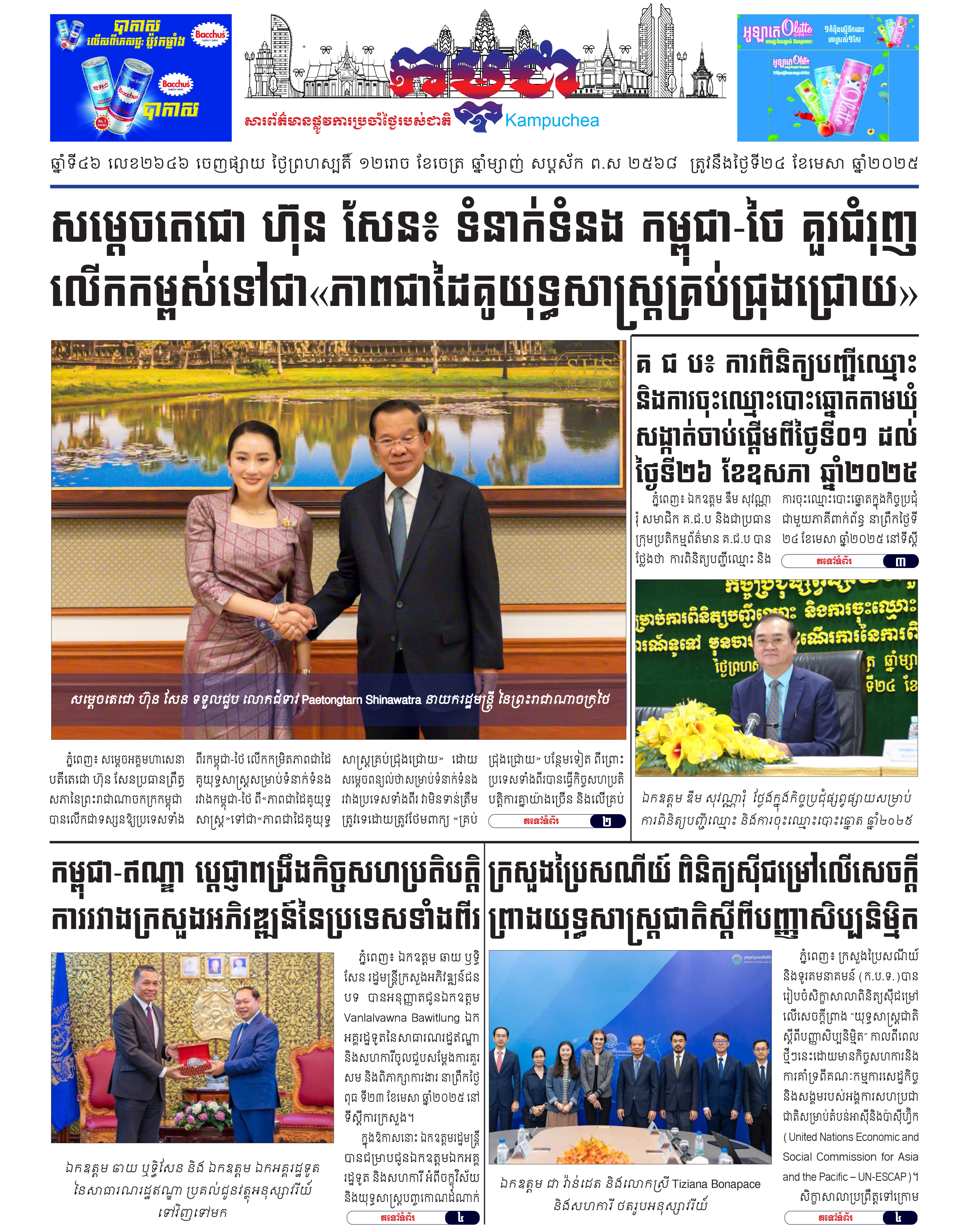 កាសែតកម្ពុជាលេខ២៦៤៦ ចេញផ្សាយថ្ងៃព្រហស្បតិ៍ ទី២៤ ខែមេសា ឆ្នាំ២០២៥